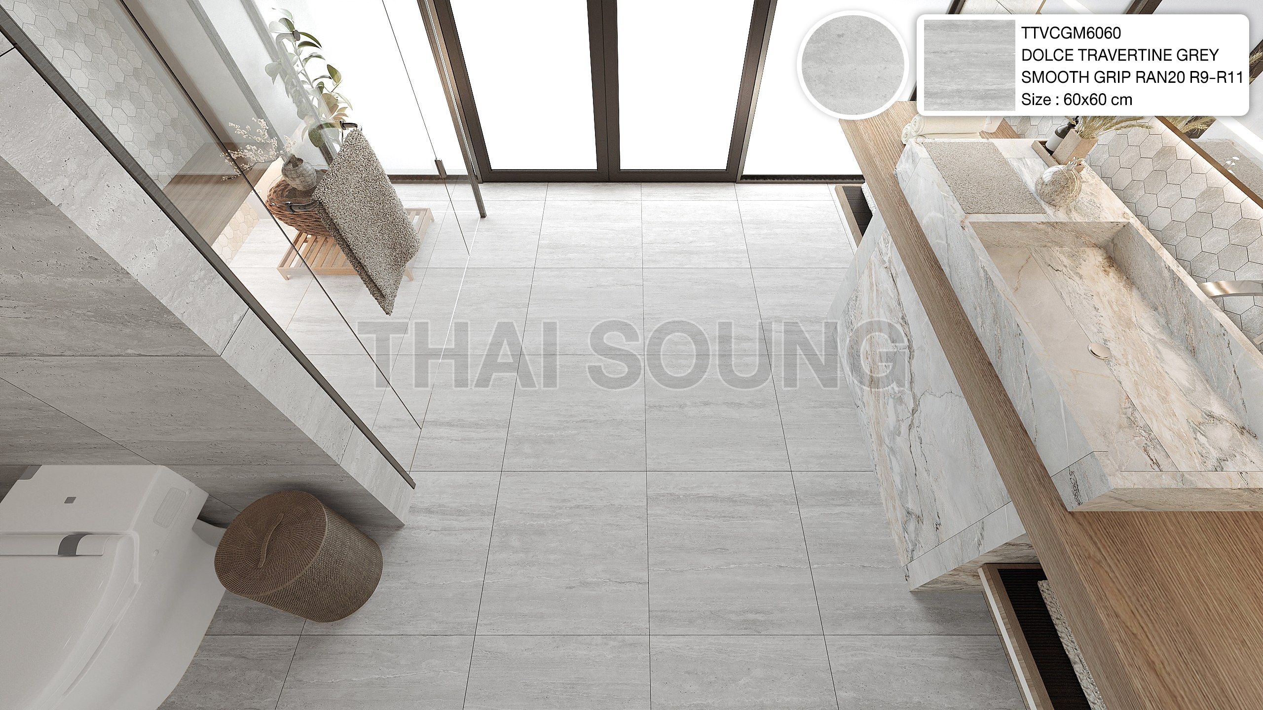 TTVCGM6060DOLCE TRAVERTINE GREY SMOOTH GRIP RAN20 R9-R11 60x60 cm