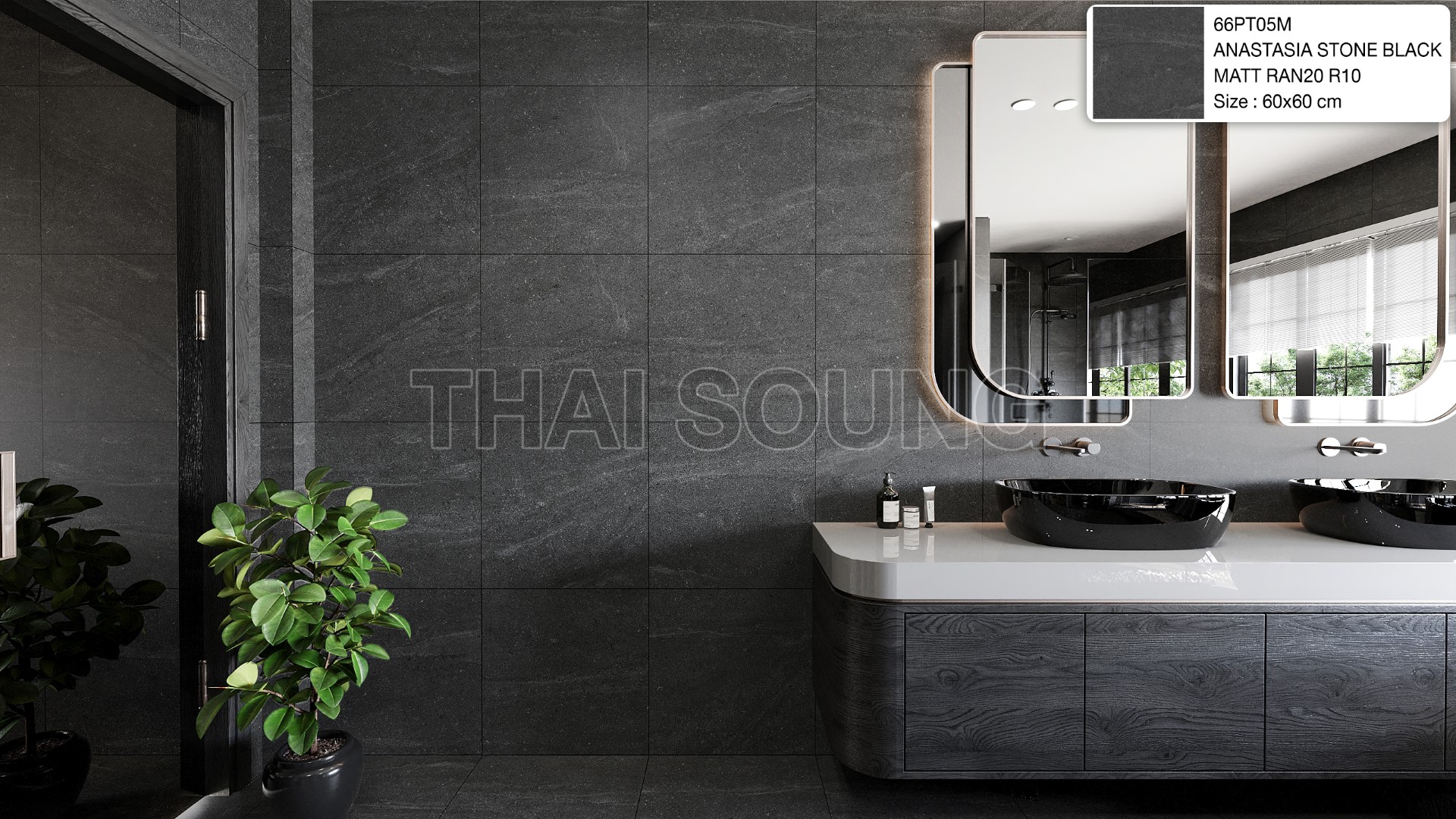66PT05MANASTASIA STONE BLACK MATT RAN20 R10 60x60 cm