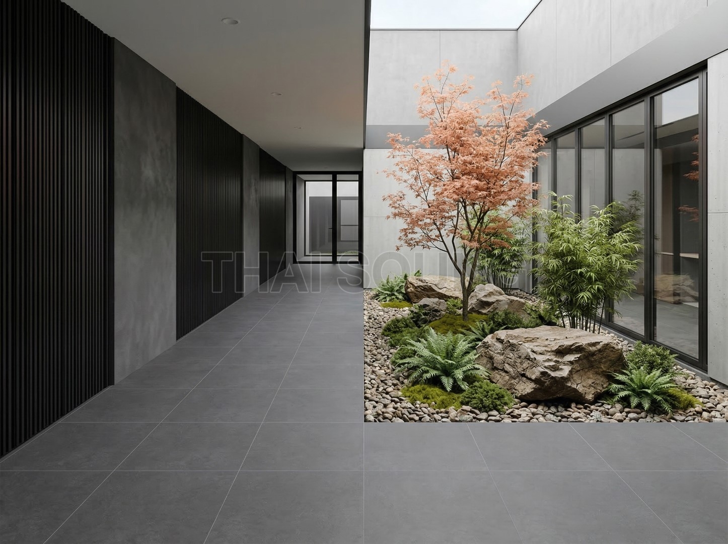 กระเบื้องลายซีเมนต์ กระเบื้องสีดำ หรือเทาเข้ม ทำให้บ้านดูมีรสนิยมและน่าค้นหาแต่ไม่ควรใช้สีดำล้วนเพราะจะทำให้บ้านดูมืดและแคบ สามารถแต่งโดยโทนดำตัดกับเทาอ่อน เช่นการใช้กระเบื้องปูพื้นสีเทา และกระเบื้องบุผนังสีดำ หรือ ตัดกับกระเบื้องลายไม้ ขนาดมาตราฐาน กระเบื้อง 60*60 เซนติเมตร หรือสามารถนำมาแปรรูปได้เป็น กระเบื้องขนาด 30*30 เซนติเมตร หรือ ขนาด 30*60 กระเบื้องชนิดพอร์ซเลนมีการผ่านการเผาด้วยความร้อนสูง ผสมผงหินจริง แร่หิน และดินขาว ทำให้ค่าความดูดซึมน้ำต่ำและมีความแข็งแรงจึงสามารถใช้งานได้ทุกสถานที่เป็นกระเบื้องปูพื้นและปูผนัง ทั้งภายนอกและภายในบ้าน กระเบื้องผิวด้าน เหมาะกับการใช้งานดีไซน์โทนโมเดิร์น และการทำความสะอาดกระเบื้อง สามารถทำได้โดยง่าย กระเบื้องกันลื่นสูง R10 เหมาะกับการปูพื้นที่ทั้งโซนแห้ง หรือ โซนที่เปียก เช่น ห้องนอน ห้องนั่งเล่น ห้องครัว ห้องน้ำ สวนหน้าบ้าน |