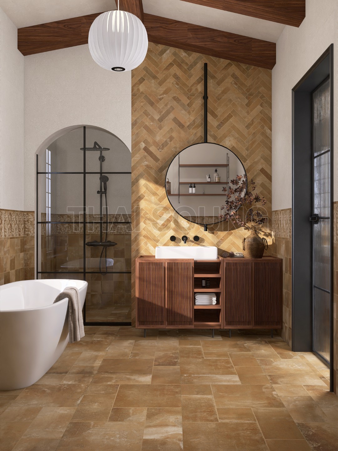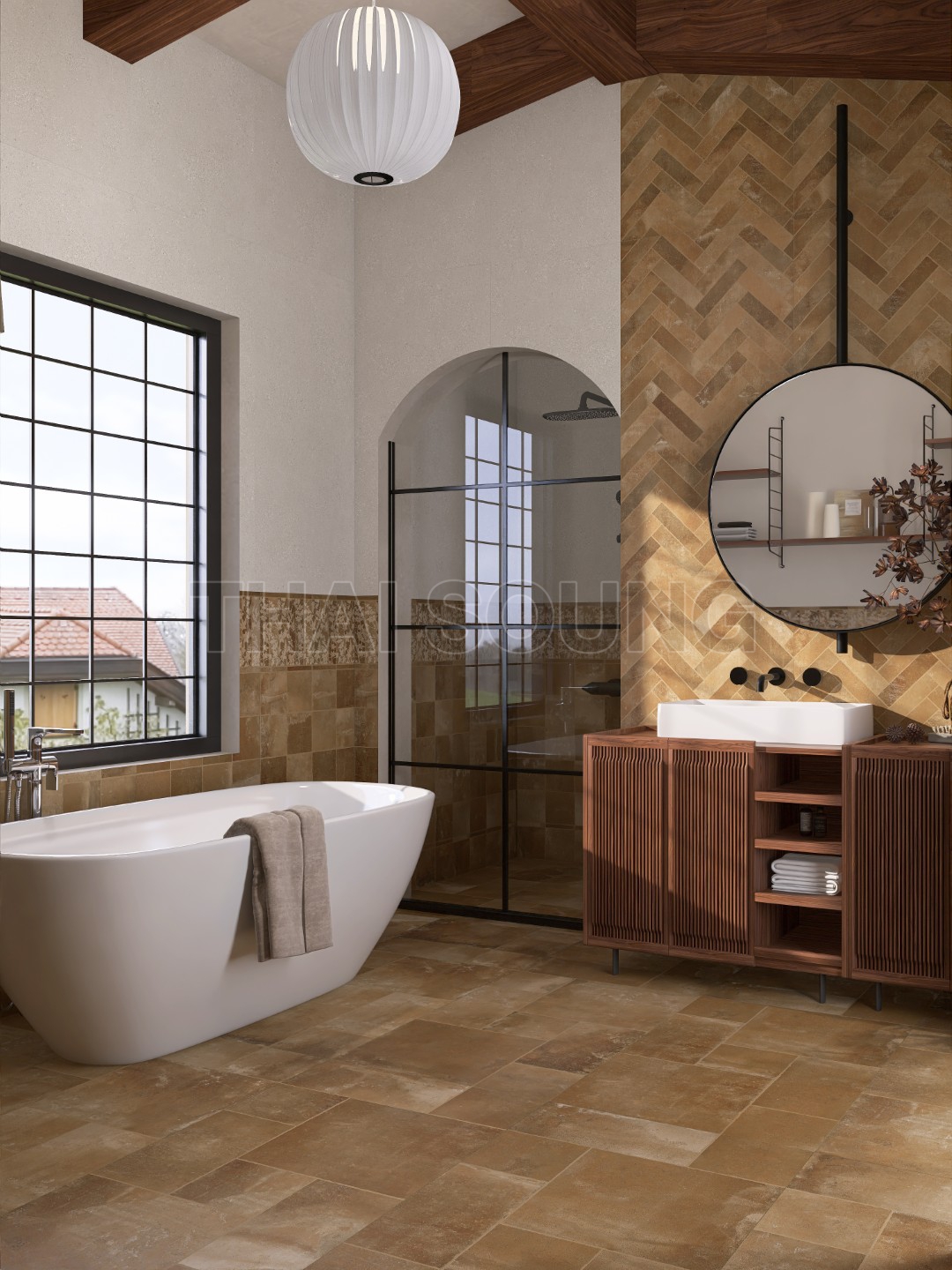 ซีรี่ย์ TUSCANY ซีรี่ย์ TUSCANY ได้รับแรงบันดาลใจจากพื้นผิวและโครงสร้างของงานปูพื้นสไตล์ยุโรปดั้งเดิม ถ่ายทอดความอบอุ่นและความคลาสสิกผ่านโทนสีที่กลมกลืน มี 4 ลวดลาย ได้แก่ ลวดลาย FRENCH, SQUARE, BRICK และ HERRINGBONE พื้นผิว MATT ค่าต้านทานการลื่น R9 มีให้เลือก 3 สี ได้แก่ GREY, COPPER และ APRICOT ขนาด 60x120 เซนติเมตร (Random 4) ช่วยให้ลวดลายดูมีมิติและไม่ซ้ำ เพิ่มความมีชีวิตชีวาให้กับพื้นผิว เหมาะสำหรับงานออกแบบที่ต้องการกลิ่นอายความเป็นธรรมชาติ ผสมผสานกับความเรียบง่ายแบบร่วมสมัย เหมาะสำหรับห้องโถง พื้นที่เชื่อมต่อภายในบ้าน โซนพักผ่อน ล็อบบี้ โรงแรม ร้านอาหาร รวมถึงพื้นที่ภายนอกอย่างเฉลียง ลานกลางแจ้ง หรือระเบียง ที่ต้องการความอบอุ่น มีสไตล์ และกลิ่นอายของยุโรปในทุกมุมมอง |