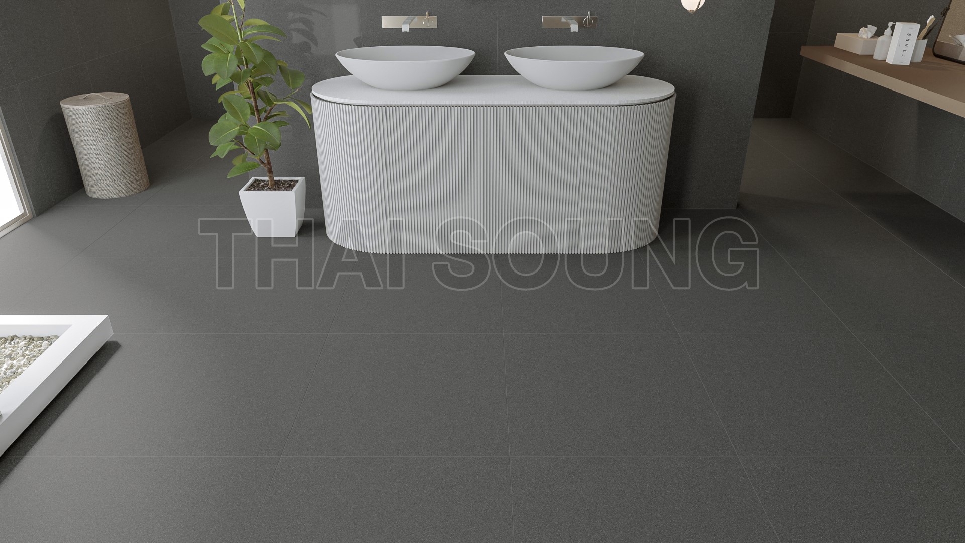 กระเบื้องลายหิน กระเบื้องสีดำ หรือเทาเข้ม ทำให้บ้านดูมีรสนิยมและน่าค้นหาแต่ไม่ควรใช้สีดำล้วนเพราะจะทำให้บ้านดูมืดและแคบ สามารถแต่งโดยโทนดำตัดกับเทาอ่อน เช่นการใช้กระเบื้องปูพื้นสีเทา และกระเบื้องบุผนังสีดำ หรือ ตัดกับกระเบื้องลายไม้ ขนาดมาตราฐาน กระเบื้อง 60*60 เซนติเมตร หรือสามารถนำมาแปรรูปได้เป็น กระเบื้องขนาด 30*30 เซนติเมตร หรือ ขนาด 30*60 กระเบื้องชนิดพอร์ซเลนมีการผ่านการเผาด้วยความร้อนสูง ผสมผงหินจริง แร่หิน และดินขาว ทำให้ค่าความดูดซึมน้ำต่ำและมีความแข็งแรงจึงสามารถใช้งานได้ทุกสถานที่เป็นกระเบื้องปูพื้นและปูผนัง ทั้งภายนอกและภายในบ้าน กระเบื้องผิวด้าน เหมาะกับการใช้งานดีไซน์โทนโมเดิร์น และการทำความสะอาดกระเบื้อง สามารถทำได้โดยง่าย กระเบื้องกันลื่นปานกลางชนิด R9 เหมาะกับการปูพื้นที่โซนแห้ง หรือ โซนที่ไม่ได้สัมผัสกับน้ำตลอดเวลา เช่น ห้องนอน ห้องนั่งเล่น ห้องครัว หรือ ห้องน้ำโซนแห้ง |