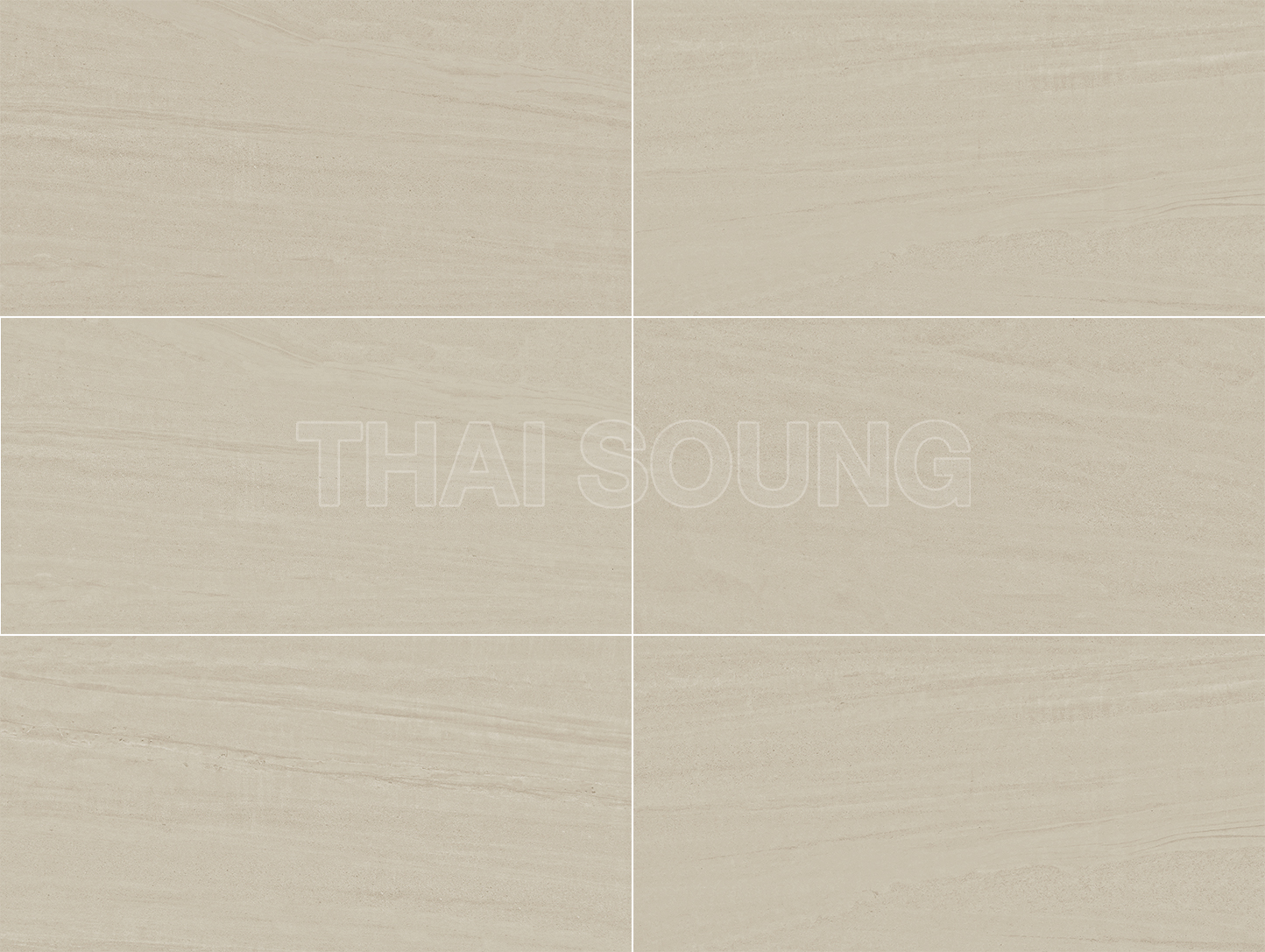 กระเบื้องลายหิน กระเบื้องสีครีมและสีเบจ เป็นโทนสีที่ได้รับความนิยมเพื่อสร้างบรรยากาศอบอุ่นให้พื้นที่ เป็นโทนสีเรียบง่าย กระเบื้องแผ่นใหญ่ขนาด 60*120 เซนติเมตร ลดรอยต่อระหว่างแผ่นกระเบื้อง สร้างความเป็นพื้นที่เดียวกัน เหมาะสำหรับบ้านที่ มีพื้นที่กว้าง เป็นขนาดความกว้างของบันไดมาตราฐานจึงนิยมนำมาเซาะร่องและปูบันได กระเบื้องชนิดพอร์ซเลนมีการผ่านการเผาด้วยความร้อนสูง ผสมผงหินจริง แร่หิน และดินขาว ทำให้ค่าความดูดซึมน้ำต่ำและมีความแข็งแรงจึงสามารถใช้งานได้ทุกสถานที่เป็นกระเบื้องปูพื้นและปูผนัง ทั้งภายนอกและภายในบ้าน กระเบื้องผิวด้าน เหมาะกับการใช้งานดีไซน์โทนโมเดิร์น และการทำความสะอาดกระเบื้อง สามารถทำได้โดยง่าย กระเบื้องกันลื่นปานกลางชนิด R9 เหมาะกับการปูพื้นที่โซนแห้ง หรือ โซนที่ไม่ได้สัมผัสกับน้ำตลอดเวลา เช่น ห้องนอน ห้องนั่งเล่น ห้องครัว หรือ ห้องน้ำโซนแห้ง |