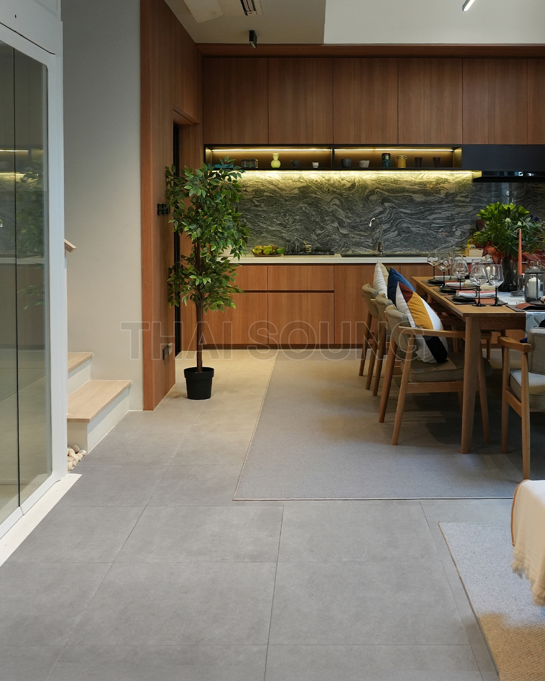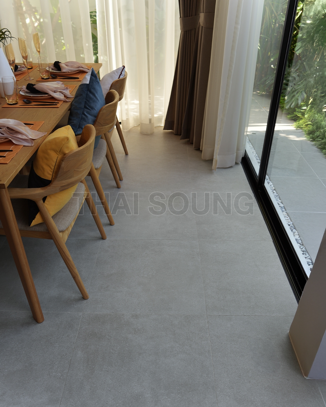 กระเบื้องลายหิน กระเบื้องสีขาว เรียบหรูและดูสบายตา ทำให้พื้นที่ดูกว้างและสว่างมากขึ้น ขนาดมาตราฐาน กระเบื้อง 60*60 เซนติเมตร หรือสามารถนำมาแปรรูปได้เป็น กระเบื้องขนาด 30*30 เซนติเมตร หรือ ขนาด 30*60 กระเบื้องชนิดพอร์ซเลนมีการผ่านการเผาด้วยความร้อนสูง ผสมผงหินจริง แร่หิน และดินขาว ทำให้ค่าความดูดซึมน้ำต่ำและมีความแข็งแรงจึงสามารถใช้งานได้ทุกสถานที่เป็นกระเบื้องปูพื้นและปูผนัง ทั้งภายนอกและภายในบ้าน กระเบื้องผิวด้าน เหมาะกับการใช้งานดีไซน์โทนโมเดิร์น และการทำความสะอาดกระเบื้อง สามารถทำได้โดยง่าย กระเบื้องกันลื่นสูง R10 เหมาะกับการปูพื้นที่ทั้งโซนแห้ง หรือ โซนที่เปียก เช่น ห้องนอน ห้องนั่งเล่น ห้องครัว ห้องน้ำ สวนหน้าบ้าน |