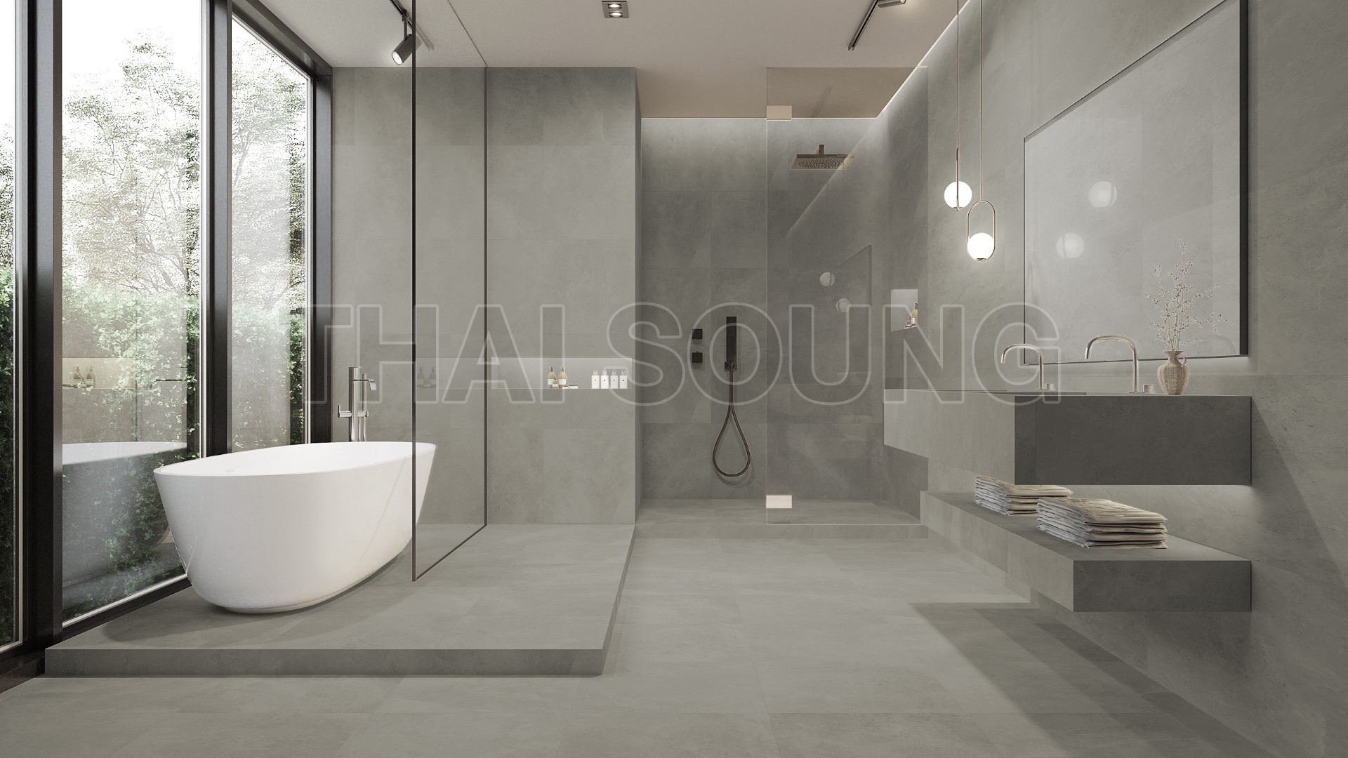 กระเบื้องลายหิน กระเบื้องสีเทา เหมาะกับการแต่งบ้านให้ดูโมเดิร์น เนื่องจากเป็นเฉดสีที่ทันสมัยและโทนสีกลาง สามารถเข้ากับของตกแต่งบ้าน และ เฟอร์นิเจอร์ได้ ขนาดมาตราฐาน กระเบื้อง 60*60 เซนติเมตร หรือสามารถนำมาแปรรูปได้เป็น กระเบื้องขนาด 30*30 เซนติเมตร หรือ ขนาด 30*60 กระเบื้องชนิดพอร์ซเลนมีการผ่านการเผาด้วยความร้อนสูง ผสมผงหินจริง แร่หิน และดินขาว ทำให้ค่าความดูดซึมน้ำต่ำและมีความแข็งแรงจึงสามารถใช้งานได้ทุกสถานที่เป็นกระเบื้องปูพื้นและปูผนัง ทั้งภายนอกและภายในบ้าน |