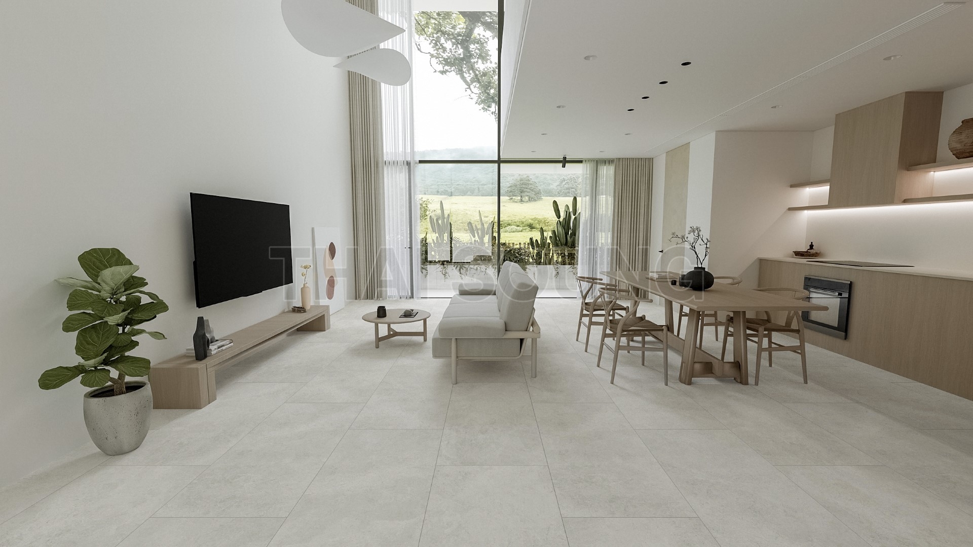 กระเบื้องลายหิน กระเบื้องสีขาว เรียบหรูและดูสบายตา ทำให้พื้นที่ดูกว้างและสว่างมากขึ้น กระเบื้องแผ่นใหญ่ขนาด 60*120 เซนติเมตร ลดรอยต่อระหว่างแผ่นกระเบื้อง สร้างความเป็นพื้นที่เดียวกัน เหมาะสำหรับบ้านที่ มีพื้นที่กว้าง เป็นขนาดความกว้างของบันไดมาตราฐานจึงนิยมนำมาเซาะร่องและปูบันได กระเบื้องชนิดพอร์ซเลนมีการผ่านการเผาด้วยความร้อนสูง ผสมผงหินจริง แร่หิน และดินขาว ทำให้ค่าความดูดซึมน้ำต่ำและมีความแข็งแรงจึงสามารถใช้งานได้ทุกสถานที่เป็นกระเบื้องปูพื้นและปูผนัง ทั้งภายนอกและภายในบ้าน |