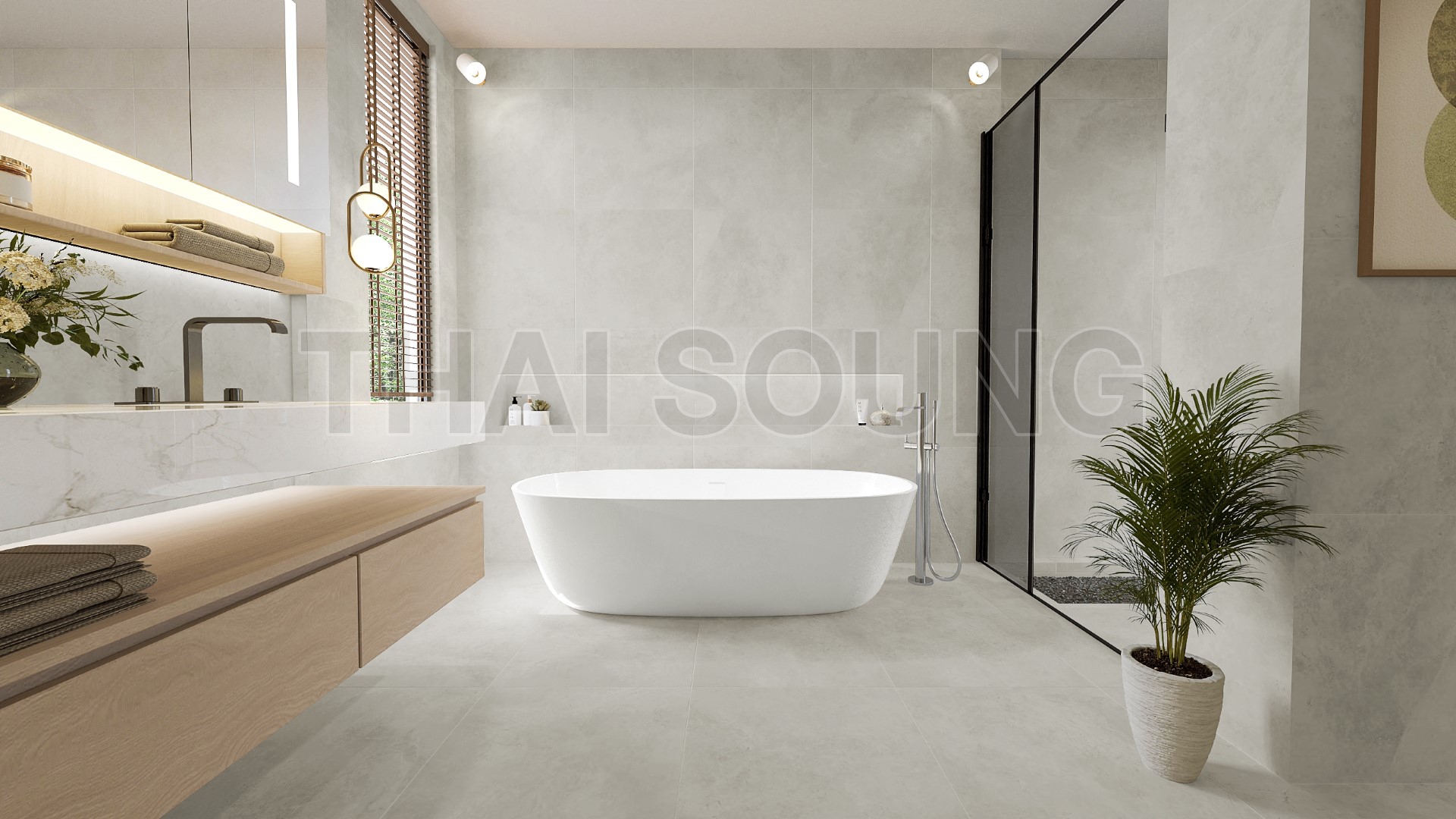 กระเบื้องลายหิน กระเบื้องสีขาว เรียบหรูและดูสบายตา ทำให้พื้นที่ดูกว้างและสว่างมากขึ้น ขนาดมาตราฐาน กระเบื้อง 60*60 เซนติเมตร หรือสามารถนำมาแปรรูปได้เป็น กระเบื้องขนาด 30*30 เซนติเมตร หรือ ขนาด 30*60 กระเบื้องชนิดพอร์ซเลนมีการผ่านการเผาด้วยความร้อนสูง ผสมผงหินจริง แร่หิน และดินขาว ทำให้ค่าความดูดซึมน้ำต่ำและมีความแข็งแรงจึงสามารถใช้งานได้ทุกสถานที่เป็นกระเบื้องปูพื้นและปูผนัง ทั้งภายนอกและภายในบ้าน |