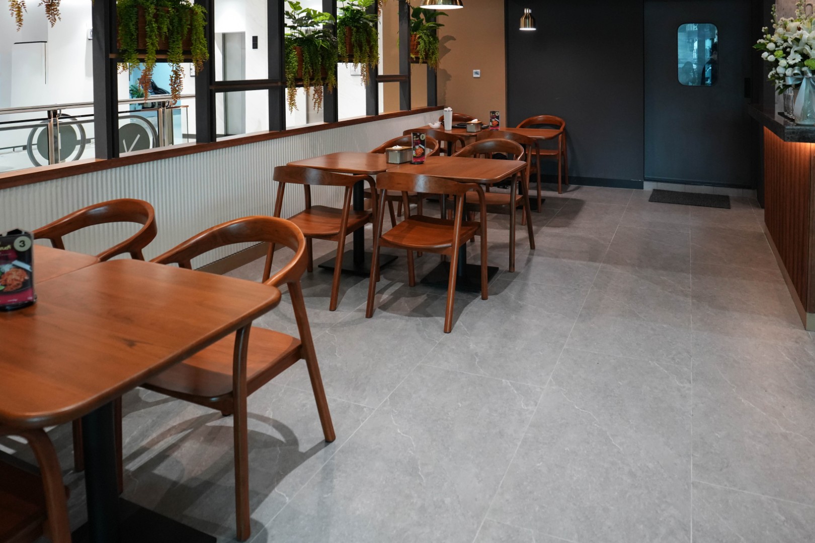 กระเบื้องลายหิน กระเบื้องสีเทา เหมาะกับการแต่งบ้านให้ดูโมเดิร์น เนื่องจากเป็นเฉดสีที่ทันสมัยและโทนสีกลาง สามารถเข้ากับของตกแต่งบ้าน และ เฟอร์นิเจอร์ได้ กระเบื้องแผ่นใหญ่ขนาด 60*120 เซนติเมตร ลดรอยต่อระหว่างแผ่นกระเบื้อง สร้างความเป็นพื้นที่เดียวกัน เหมาะสำหรับบ้านที่ มีพื้นที่กว้าง เป็นขนาดความกว้างของบันไดมาตราฐานจึงนิยมนำมาเซาะร่องและปูบันได กระเบื้องชนิดพอร์ซเลนมีการผ่านการเผาด้วยความร้อนสูง ผสมผงหินจริง แร่หิน และดินขาว ทำให้ค่าความดูดซึมน้ำต่ำและมีความแข็งแรงจึงสามารถใช้งานได้ทุกสถานที่เป็นกระเบื้องปูพื้นและปูผนัง ทั้งภายนอกและภายในบ้าน กระเบื้องผิวด้าน เหมาะกับการใช้งานดีไซน์โทนโมเดิร์น และการทำความสะอาดกระเบื้อง สามารถทำได้โดยง่าย กระเบื้องกันลื่นสูง R10 เหมาะกับการปูพื้นที่ทั้งโซนแห้ง หรือ โซนที่เปียก เช่น ห้องนอน ห้องนั่งเล่น ห้องครัว ห้องน้ำ สวนหน้าบ้าน |