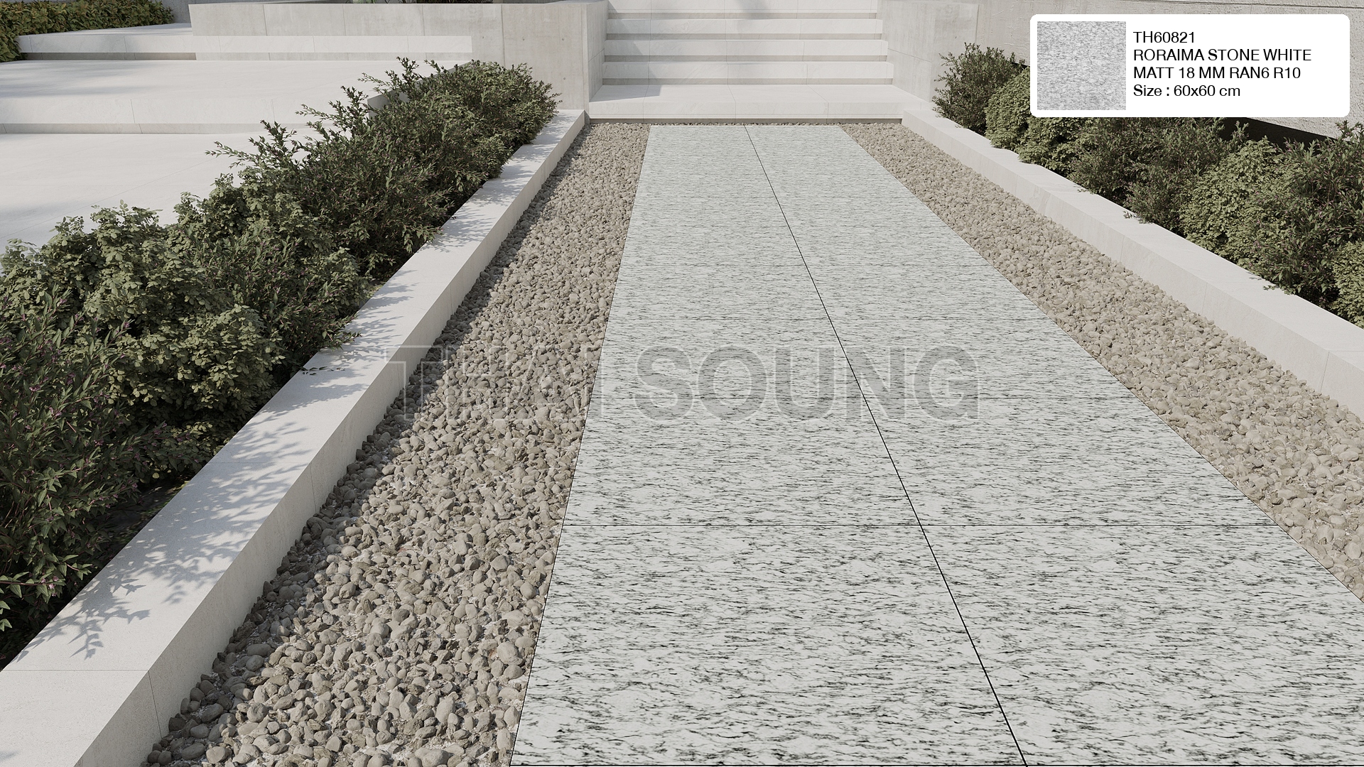สินค้ามีเฉพาะขนาด 60x60 เซนติเมตร ลวดลาย REPEAT (ลายเดียวซ้ำๆ) ผิวสัมผัส คือ MATT ค่า R11 และ R10 ต้านทานการลื่น เลือกให้เหมาะสมกับการใช้งาน มี 5 เฉดสี ได้แก่ RAVEN BLACK, BLACK, WHITE, FOGGY GREY และ GREY นิยมนำไปปูพื้นที่ภายนอกที่ต้องการต้านทานความลื่นและต้องการรองรับน้ำหนักเป็นพิเศษ เช่น ลานจอดรถ ริมสระว่ายน้ำ พื้นที่สวนสาธารณะ หรือชานชาลา