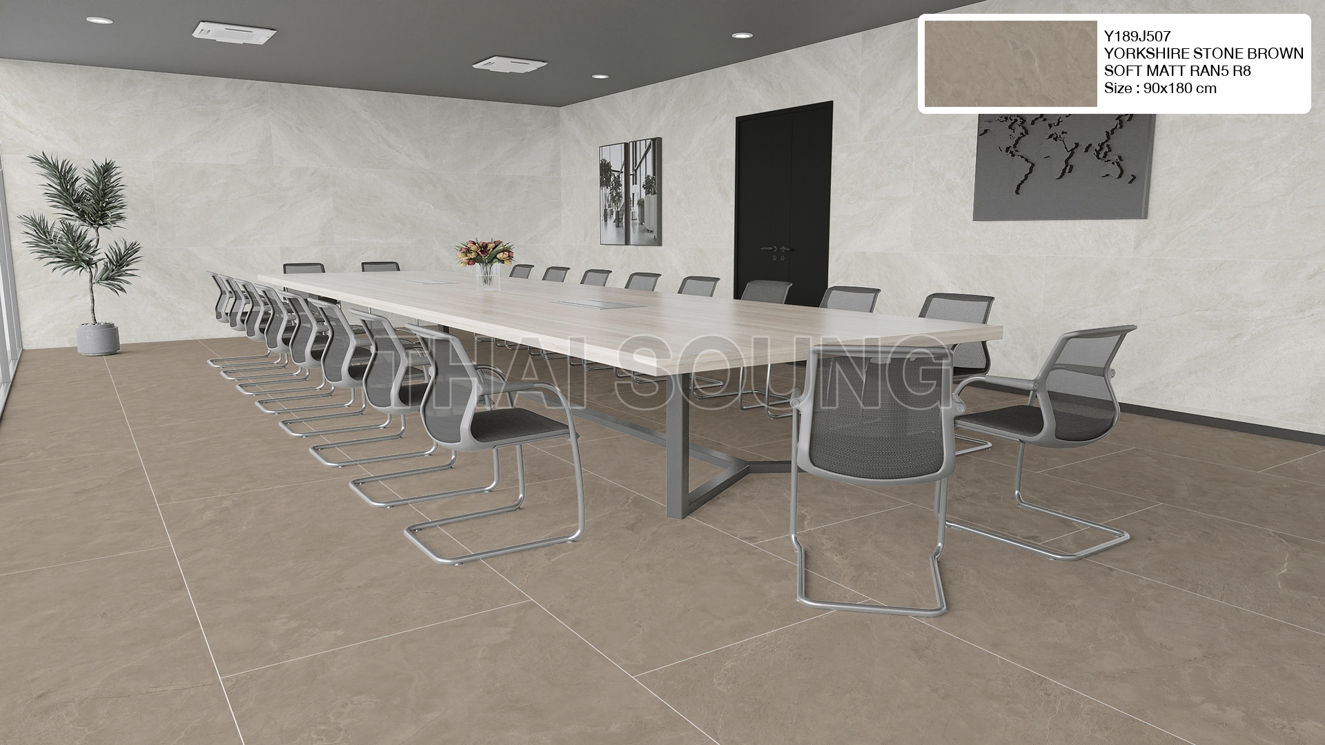 กระเบื้องพอร์ซเลน YORKSHIRE STONE SERIES ชนิดเคลือบ (G/NORMAL BODY 0-3%) แบบปูพื้น บุผนัง ภายในและภายนอก กลุ่มดูดซึมน้ำต่ำน้อยกว่า 3% มีเฉพาะขนาด 90x180 เซนติเมตร ลวดลาย RANDOM 5 ลาย ทำให้ PATTERN สวยงามและลงตัว ผิวสัมผัส SOFT MATT (R8) มี 2 เฉดสี ได้แก่ CHARCOAL และ BROWN สามารถสร้างสรรค์ให้เหมาะกับงานออกแบบได้อย่างหลากหลาย กระเบื้องลวดลายทราเวอร์ทีนหรือหินลาวา มีลักษณะเป็นริ้วๆ ดูแล้วสบายตา เพิ่มความหรูหราให้กับพื้นที่ส่วนต่างๆได้เป็นอย่างดี นอกจากนี้ยังนิยมนำไปตกแต่งอาคาร ที่พักอาศัย โรงแรม ร้านอาหาร และทำท็อปโต๊ะ หรือฟอร์นิเจอร์ต่างๆ ด้วยโทนสีเรียบง่ายและสามารถเข้าได้กับทุกห้อง หรือทุกสไตล์การออกแบบ