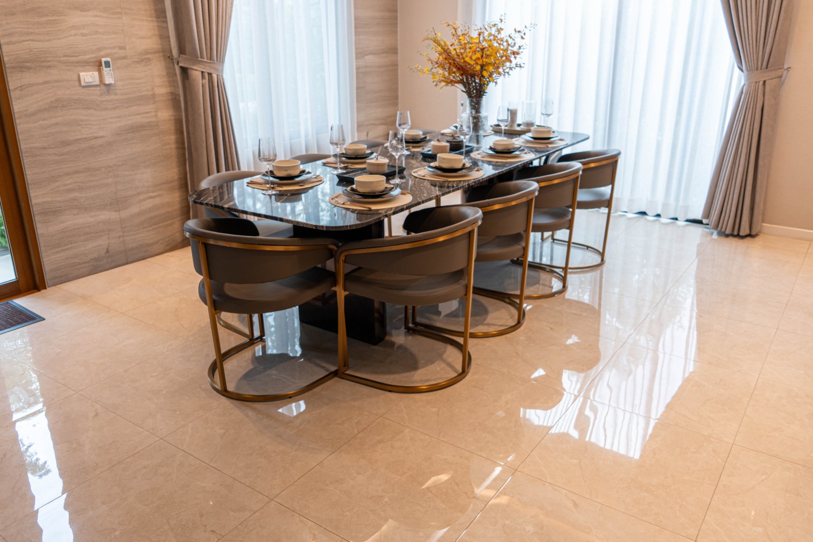 กระเบื้องลายหิน กระเบื้องสีครีมและสีเบจ เป็นโทนสีที่ได้รับความนิยมเพื่อสร้างบรรยากาศอบอุ่นให้พื้นที่ เป็นโทนสีเรียบง่าย ขนาดมาตราฐาน กระเบื้อง 60*60 เซนติเมตร หรือสามารถนำมาแปรรูปได้เป็น กระเบื้องขนาด 30*30 เซนติเมตร หรือ ขนาด 30*60 กระเบื้องชนิดพอร์ซเลนมีการผ่านการเผาด้วยความร้อนสูง ผสมผงหินจริง แร่หิน และดินขาว ทำให้ค่าความดูดซึมน้ำต่ำและมีความแข็งแรงจึงสามารถใช้งานได้ทุกสถานที่เป็นกระเบื้องปูพื้นและปูผนัง ทั้งภายนอกและภายในบ้าน กระเบื้องผิวมันหรือรู้จักอีกอย่างว่ากระเบื้องผิวเงา ให้ความรู้สึกหรูหราและทำให้บ้านดูใหม่ และกว้างขึ้น กระเบื้องชนิดนี้ไม่มีค่าต้านทานความลื่น ( Slip Resistance Rating : ค่ากันความลื่น หรือ ค่า R ) จึงเหมาะกับการปูพื้นที่โซนแห้ง เช่น ห้องนอน ห้องนั่งเล่น หรือ ห้องครัว |
