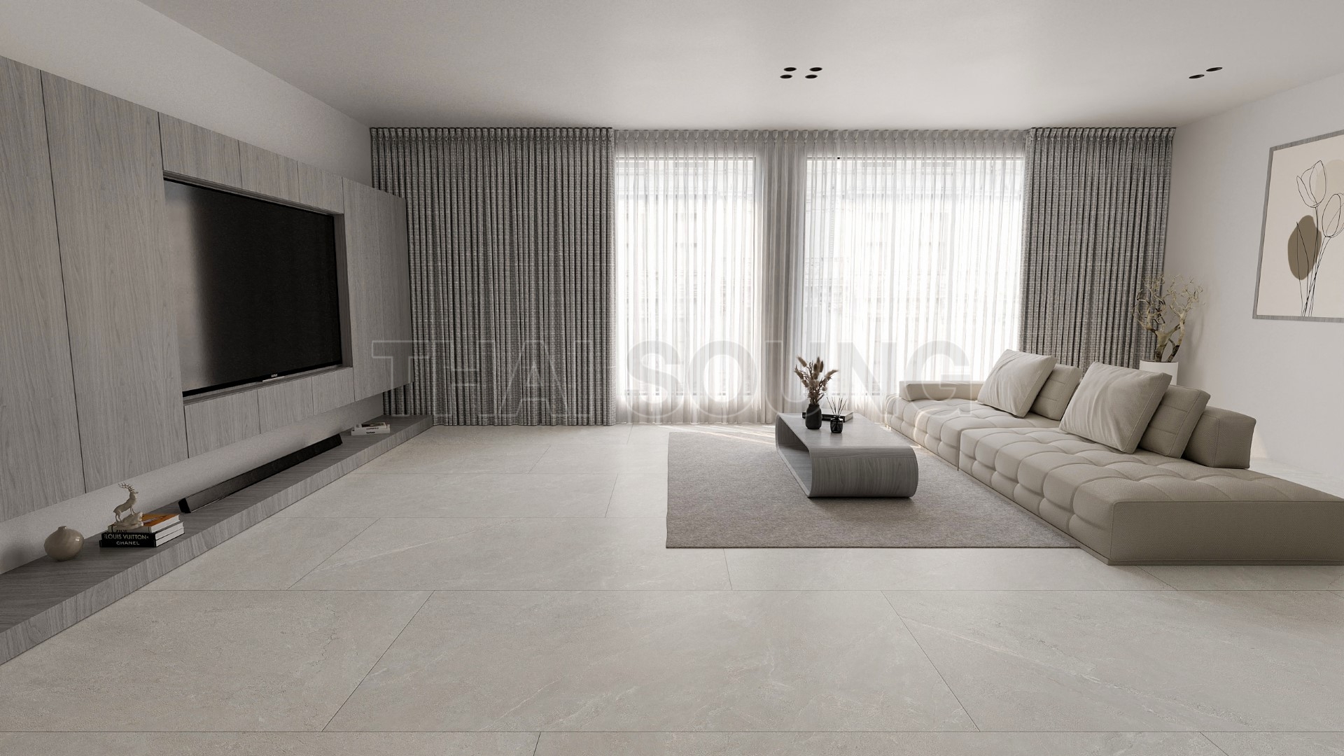 กระเบื้องลายหิน กระเบื้องสีเทา เหมาะกับการแต่งบ้านให้ดูโมเดิร์น เนื่องจากเป็นเฉดสีที่ทันสมัยและโทนสีกลาง สามารถเข้ากับของตกแต่งบ้าน และ เฟอร์นิเจอร์ได้ กระเบื้องแผ่นใหญ่ขนาด 90*180 เซนติเมตร ลดรอยต่อระหว่างแผ่นกระเบื้อง สร้างความเป็นพื้นที่เดียวกัน เหมาะสำหรับบ้านที่ มีพื้นที่กว้าง หรือสามารถนำไปตกแต่งเป็นผนัง feature wall ได้ กระเบื้องชนิดพอร์ซเลนมีการผ่านการเผาด้วยความร้อนสูง ผสมผงหินจริง แร่หิน และดินขาว ทำให้ค่าความดูดซึมน้ำต่ำและมีความแข็งแรงจึงสามารถใช้งานได้ทุกสถานที่เป็นกระเบื้องปูพื้นและปูผนัง ทั้งภายนอกและภายในบ้าน กระเบื้องผิวด้าน เหมาะกับการใช้งานดีไซน์โทนโมเดิร์น และการทำความสะอาดกระเบื้อง สามารถทำได้โดยง่าย กระเบื้องกันลื่นปานกลางชนิด R9 เหมาะกับการปูพื้นที่โซนแห้ง หรือ โซนที่ไม่ได้สัมผัสกับน้ำตลอดเวลา เช่น ห้องนอน ห้องนั่งเล่น ห้องครัว หรือ ห้องน้ำโซนแห้ง |