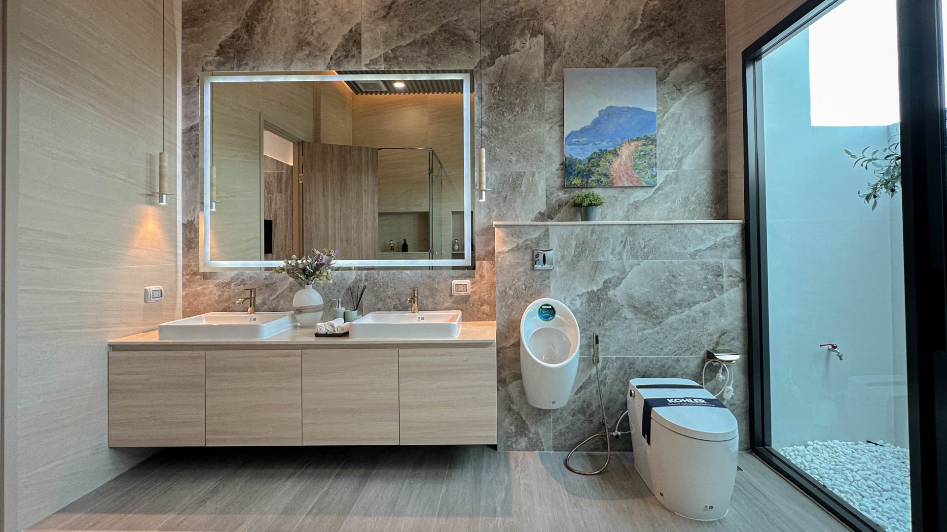กระเบื้องลายหิน กระเบื้องสีเทา เหมาะกับการแต่งบ้านให้ดูโมเดิร์น เนื่องจากเป็นเฉดสีที่ทันสมัยและโทนสีกลาง สามารถเข้ากับของตกแต่งบ้าน และ เฟอร์นิเจอร์ได้ กระเบื้องแผ่นใหญ่ขนาด 60*120 เซนติเมตร ลดรอยต่อระหว่างแผ่นกระเบื้อง สร้างความเป็นพื้นที่เดียวกัน เหมาะสำหรับบ้านที่ มีพื้นที่กว้าง เป็นขนาดความกว้างของบันไดมาตราฐานจึงนิยมนำมาเซาะร่องและปูบันได กระเบื้องชนิดพอร์ซเลนมีการผ่านการเผาด้วยความร้อนสูง ผสมผงหินจริง แร่หิน และดินขาว ทำให้ค่าความดูดซึมน้ำต่ำและมีความแข็งแรงจึงสามารถใช้งานได้ทุกสถานที่เป็นกระเบื้องปูพื้นและปูผนัง ทั้งภายนอกและภายในบ้าน กระเบื้องกันลื่นปานกลางชนิด R9 เหมาะกับการปูพื้นที่โซนแห้ง หรือ โซนที่ไม่ได้สัมผัสกับน้ำตลอดเวลา เช่น ห้องนอน ห้องนั่งเล่น ห้องครัว หรือ ห้องน้ำโซนแห้ง |