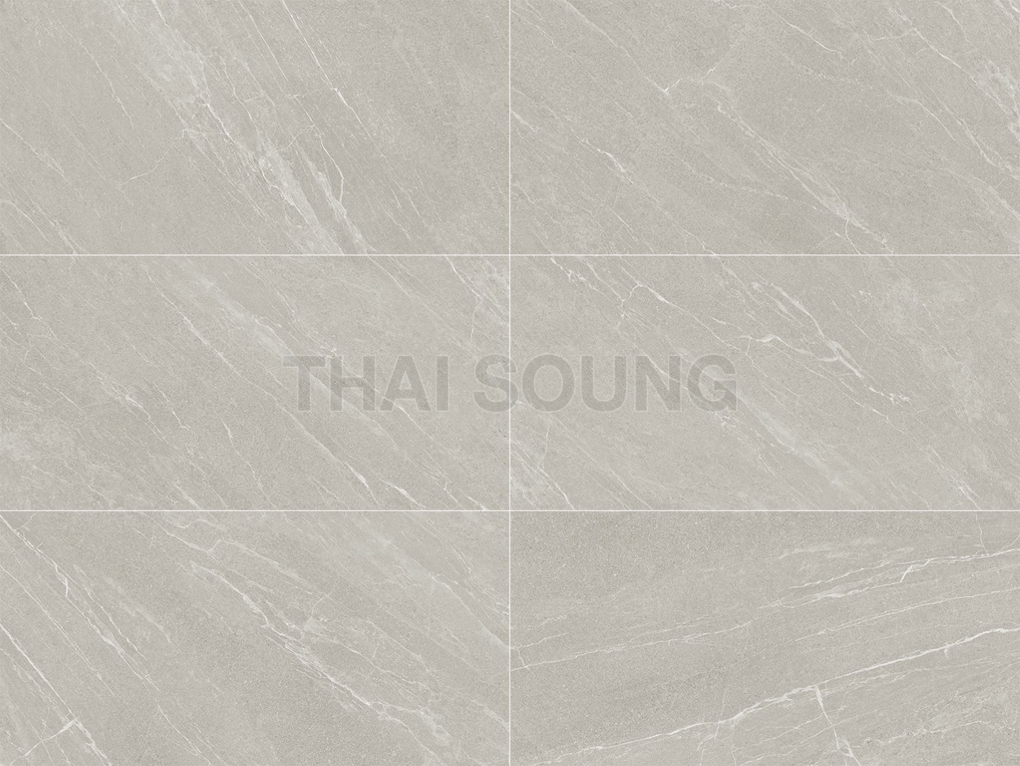 กระเบื้องลายหิน กระเบื้องแผ่นใหญ่ขนาด 60*120 เซนติเมตร ลดรอยต่อระหว่างแผ่นกระเบื้อง สร้างความเป็นพื้นที่เดียวกัน เหมาะสำหรับบ้านที่ มีพื้นที่กว้าง เป็นขนาดความกว้างของบันไดมาตราฐานจึงนิยมนำมาเซาะร่องและปูบันได กระเบื้องชนิดพอร์ซเลนมีการผ่านการเผาด้วยความร้อนสูง ผสมผงหินจริง แร่หิน และดินขาว ทำให้ค่าความดูดซึมน้ำต่ำและมีความแข็งแรงจึงสามารถใช้งานได้ทุกสถานที่เป็นกระเบื้องปูพื้นและปูผนัง ทั้งภายนอกและภายในบ้าน กระเบื้องผิวด้าน เหมาะกับการใช้งานดีไซน์โทนโมเดิร์น และการทำความสะอาดกระเบื้อง สามารถทำได้โดยง่าย กระเบื้องกันลื่นปานกลางชนิด R9 เหมาะกับการปูพื้นที่โซนแห้ง หรือ โซนที่ไม่ได้สัมผัสกับน้ำตลอดเวลา เช่น ห้องนอน ห้องนั่งเล่น ห้องครัว หรือ ห้องน้ำโซนแห้ง |