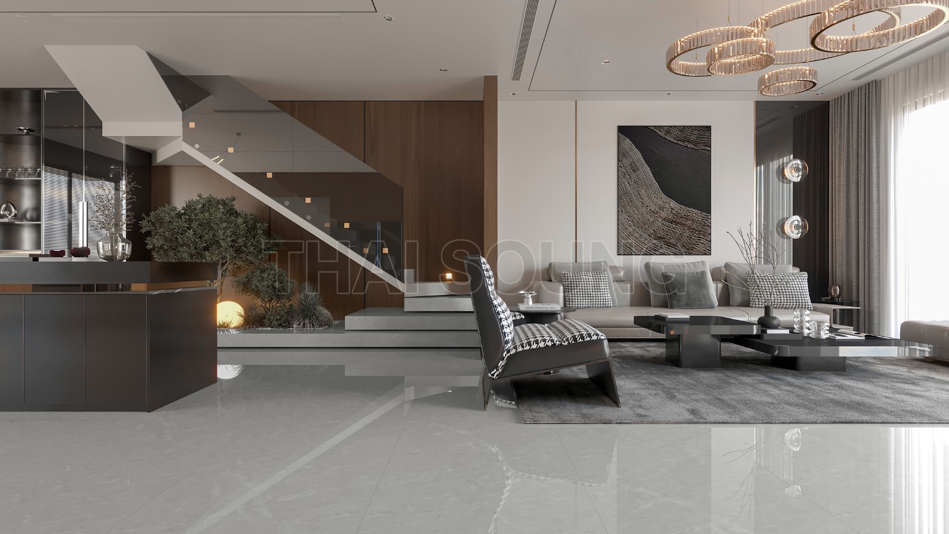 กระเบื้องลายหิน กระเบื้องสีเทา เหมาะกับการแต่งบ้านให้ดูโมเดิร์น เนื่องจากเป็นเฉดสีที่ทันสมัยและโทนสีกลาง สามารถเข้ากับของตกแต่งบ้าน และ เฟอร์นิเจอร์ได้ กระเบื้องแผ่นใหญ่ขนาด 80*80 เซนติเมตร ลดรอยต่อระหว่างแผ่นกระเบื้อง สร้างความเป็นพื้นที่เดียวกัน เหมาะสำหรับบ้านที่ มีพื้นที่กว้าง หรือสามารถนำไปตกแต่งเป็นผนัง feature wall ได้ กระเบื้องชนิดพอร์ซเลนมีการผ่านการเผาด้วยความร้อนสูง ผสมผงหินจริง แร่หิน และดินขาว ทำให้ค่าความดูดซึมน้ำต่ำและมีความแข็งแรงจึงสามารถใช้งานได้ทุกสถานที่เป็นกระเบื้องปูพื้นและปูผนัง ทั้งภายนอกและภายในบ้าน กระเบื้องผิวมันหรือรู้จักอีกอย่างว่ากระเบื้องผิวเงา ให้ความรู้สึกหรูหราและทำให้บ้านดูใหม่ และกว้างขึ้น กระเบื้องชนิดนี้ไม่มีค่าต้านทานความลื่น ( Slip Resistance Rating : ค่ากันความลื่น หรือ ค่า R ) จึงเหมาะกับการปูพื้นที่โซนแห้ง เช่น ห้องนอน ห้องนั่งเล่น หรือ ห้องครัว |