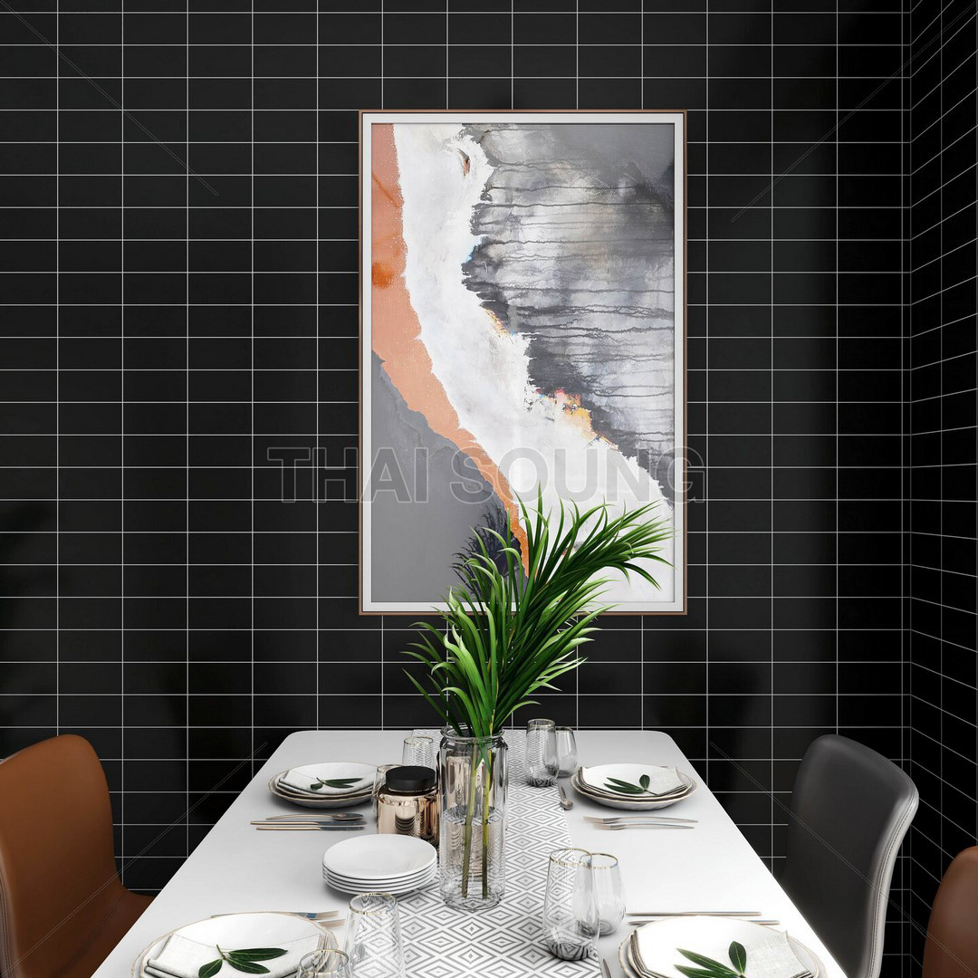 กระเบื้องสีพื้น กระเบื้องสีดำ หรือเทาเข้ม ทำให้บ้านดูมีรสนิยมและน่าค้นหาแต่ไม่ควรใช้สีดำล้วนเพราะจะทำให้บ้านดูมืดและแคบ สามารถแต่งโดยโทนดำตัดกับเทาอ่อน เช่นการใช้กระเบื้องปูพื้นสีเทา และกระเบื้องบุผนังสีดำ หรือ ตัดกับกระเบื้องลายไม้ กระเบื้องแผ่นเล็ก ขนาด 7.5*15 เหมาะสำหรับนำไปตกแต่งผนัง โดยการนำไปปูรูปแบบต่างๆ เช่น ปูกระเบื้องแบบก่ออิฐ ปูสลับ หรือ ปูก้างปลา กระเบื้องชนิดพอร์ซเลนมีการผ่านการเผาด้วยความร้อนสูง ผสมผงหินจริง แร่หิน และดินขาว ทำให้ค่าความดูดซึมน้ำต่ำและมีความแข็งแรงจึงสามารถใช้งานได้ทุกสถานที่เป็นกระเบื้องปูพื้นและปูผนัง ทั้งภายนอกและภายในบ้าน กระเบื้องผิวด้าน เหมาะกับการใช้งานดีไซน์โทนโมเดิร์น และการทำความสะอาดกระเบื้อง สามารถทำได้โดยง่าย กระเบื้องชนิดนี้ไม่มีค่าต้านทานความลื่น ( Slip Resistance Rating : ค่ากันความลื่น หรือ ค่า R ) จึงเหมาะกับการปูพื้นที่โซนแห้ง เช่น ห้องนอน ห้องนั่งเล่น หรือ ห้องครัว |
