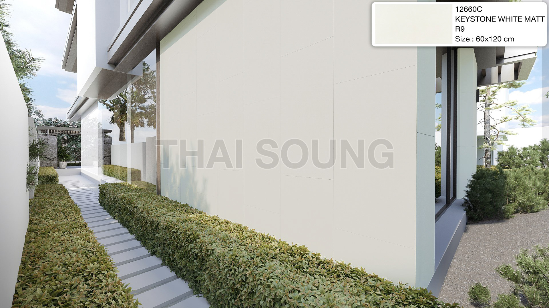 กระเบื้องสีพื้น กระเบื้องสีขาว เรียบหรูและดูสบายตา ทำให้พื้นที่ดูกว้างและสว่างมากขึ้น กระเบื้องแผ่นใหญ่ขนาด 60*120 เซนติเมตร ลดรอยต่อระหว่างแผ่นกระเบื้อง สร้างความเป็นพื้นที่เดียวกัน เหมาะสำหรับบ้านที่ มีพื้นที่กว้าง เป็นขนาดความกว้างของบันไดมาตราฐานจึงนิยมนำมาเซาะร่องและปูบันได กระเบื้องชนิดพอร์ซเลนมีการผ่านการเผาด้วยความร้อนสูง ผสมผงหินจริง แร่หิน และดินขาว ทำให้ค่าความดูดซึมน้ำต่ำและมีความแข็งแรงจึงสามารถใช้งานได้ทุกสถานที่เป็นกระเบื้องปูพื้นและปูผนัง ทั้งภายนอกและภายในบ้าน กระเบื้องผิวด้าน เหมาะกับการใช้งานดีไซน์โทนโมเดิร์น และการทำความสะอาดกระเบื้อง สามารถทำได้โดยง่าย กระเบื้องกันลื่นปานกลางชนิด R9 เหมาะกับการปูพื้นที่โซนแห้ง หรือ โซนที่ไม่ได้สัมผัสกับน้ำตลอดเวลา เช่น ห้องนอน ห้องนั่งเล่น ห้องครัว หรือ ห้องน้ำโซนแห้ง |