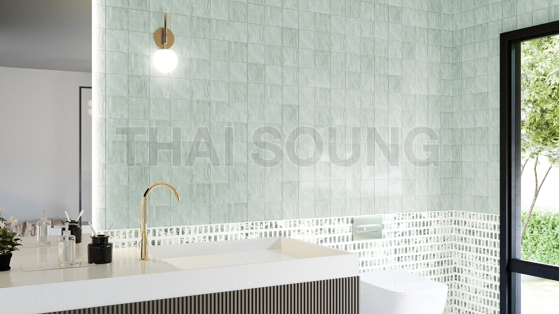กระเบื้องเซรามิค SUBWAY SERIES ชนิดเคลือบ (G/CERAMIC BODY 10.1-20%) เหมาะสำหรับการปูแบบบุผนังภายใน ด้วยคุณสมบัติการดูดซึมน้ำสูงมากกว่า 10% ออกแบบมาเพื่อเพิ่มมิติให้ผนังภายใน มีให้เลือก 2 ขนาด: 5x25 และ 12x12 ซม. ผิวสัมผัส Matt และ Glossy Wavy Texture (ผิวคลื่น) 5 โทนสีที่อบอุ่นและเรียบง่าย ได้แก่ Ash, Green, Mint, Beige และ White