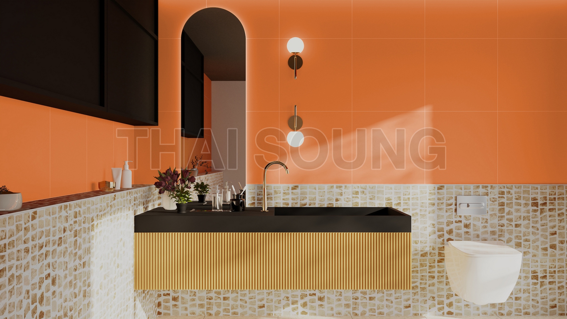 กระเบื้องที่เลียนแบบหินขัด ลวดลายเม็ดหินที่ถูกเติมแต่งให้มีสีสันสดใส ช่วยเพิ่มมิติให้พื้นที่ในอาคารดูสนุก มีชีวิตชีวา เติมเต็มไลฟ์สไตล์ แบบไม่มีขีดจำกัด แต่ในขณะเดียวกันก็ยังคงความโมเดิร์น ทันสมัย อย่างลงตัว