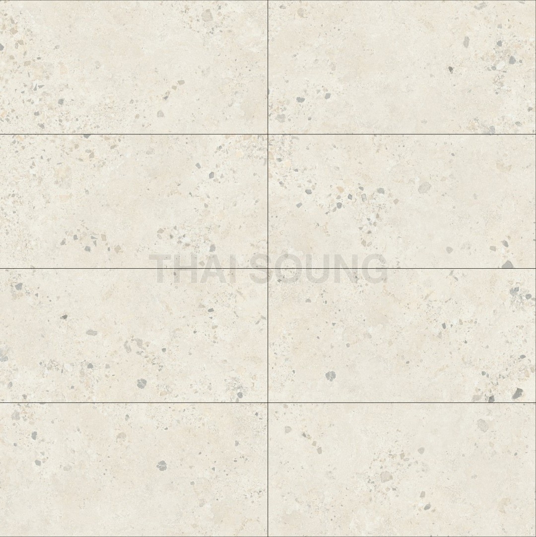 กระเบื้ื้องลายหินขัด หรือ กระเบื้องลายหินล้าง กระเบื้องสีขาว เรียบหรูและดูสบายตา ทำให้พื้นที่ดูกว้างและสว่างมากขึ้น กระเบื้องแผ่นใหญ่ขนาด 60*120 เซนติเมตร ลดรอยต่อระหว่างแผ่นกระเบื้อง สร้างความเป็นพื้นที่เดียวกัน เหมาะสำหรับบ้านที่ มีพื้นที่กว้าง เป็นขนาดความกว้างของบันไดมาตราฐานจึงนิยมนำมาเซาะร่องและปูบันได กระเบื้องชนิดพอร์ซเลนมีการผ่านการเผาด้วยความร้อนสูง ผสมผงหินจริง แร่หิน และดินขาว ทำให้ค่าความดูดซึมน้ำต่ำและมีความแข็งแรงจึงสามารถใช้งานได้ทุกสถานที่เป็นกระเบื้องปูพื้นและปูผนัง ทั้งภายนอกและภายในบ้าน กระเบื้องผิวด้าน เหมาะกับการใช้งานดีไซน์โทนโมเดิร์น และการทำความสะอาดกระเบื้อง สามารถทำได้โดยง่าย กระเบื้องกันลื่นสูง R10 เหมาะกับการปูพื้นที่ทั้งโซนแห้ง หรือ โซนที่เปียก เช่น ห้องนอน ห้องนั่งเล่น ห้องครัว ห้องน้ำ สวนหน้าบ้าน |