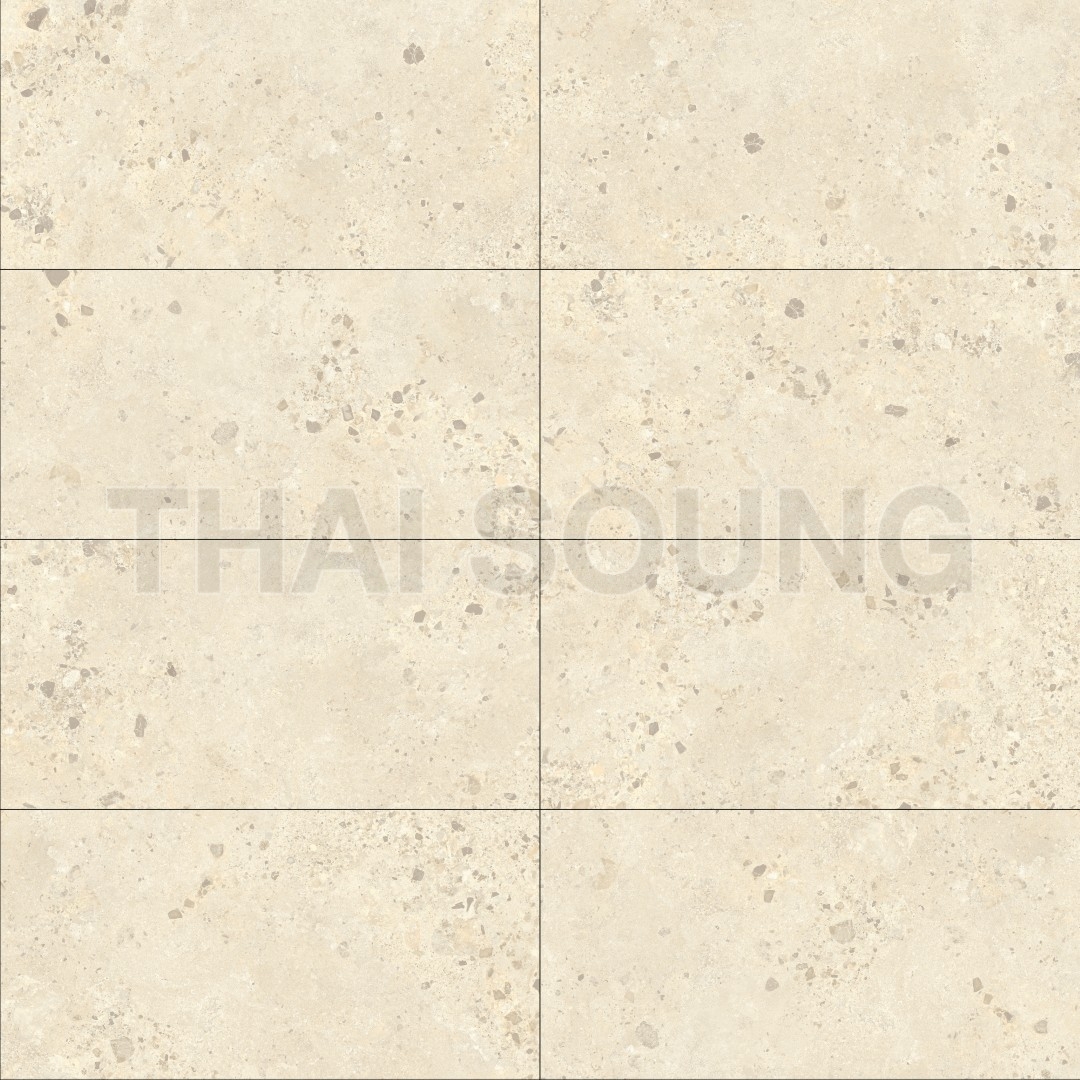 กระเบื้ื้องลายหินขัด หรือ กระเบื้องลายหินล้าง กระเบื้องสีครีมและสีเบจ เป็นโทนสีที่ได้รับความนิยมเพื่อสร้างบรรยากาศอบอุ่นให้พื้นที่ เป็นโทนสีเรียบง่าย กระเบื้องแผ่นใหญ่ขนาด 60*120 เซนติเมตร ลดรอยต่อระหว่างแผ่นกระเบื้อง สร้างความเป็นพื้นที่เดียวกัน เหมาะสำหรับบ้านที่ มีพื้นที่กว้าง เป็นขนาดความกว้างของบันไดมาตราฐานจึงนิยมนำมาเซาะร่องและปูบันได กระเบื้องชนิดพอร์ซเลนมีการผ่านการเผาด้วยความร้อนสูง ผสมผงหินจริง แร่หิน และดินขาว ทำให้ค่าความดูดซึมน้ำต่ำและมีความแข็งแรงจึงสามารถใช้งานได้ทุกสถานที่เป็นกระเบื้องปูพื้นและปูผนัง ทั้งภายนอกและภายในบ้าน กระเบื้องผิวด้าน เหมาะกับการใช้งานดีไซน์โทนโมเดิร์น และการทำความสะอาดกระเบื้อง สามารถทำได้โดยง่าย กระเบื้องกันลื่นสูง R10 เหมาะกับการปูพื้นที่ทั้งโซนแห้ง หรือ โซนที่เปียก เช่น ห้องนอน ห้องนั่งเล่น ห้องครัว ห้องน้ำ สวนหน้าบ้าน |