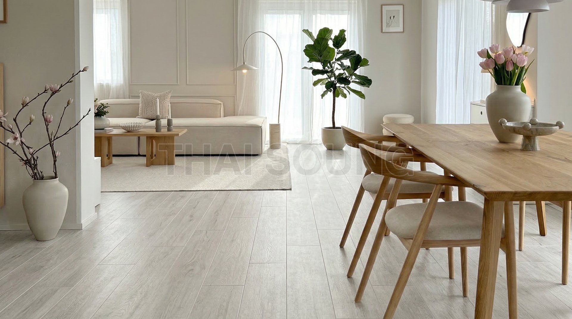 เมื่อติดตั้งแล้วจะรู้สึกถึงความอ่อนไหวของลวดลายไม้ได้เป็นอย่างดี คุณสมบัติ เป็นวัสดุที่สามารถทดแทนไม้จริง อีกทั้งยังดูแลรักษาง่ายและเพิ่มอายุการใช้งานได้มากกว่าวัสดุจากธรรมชาติ