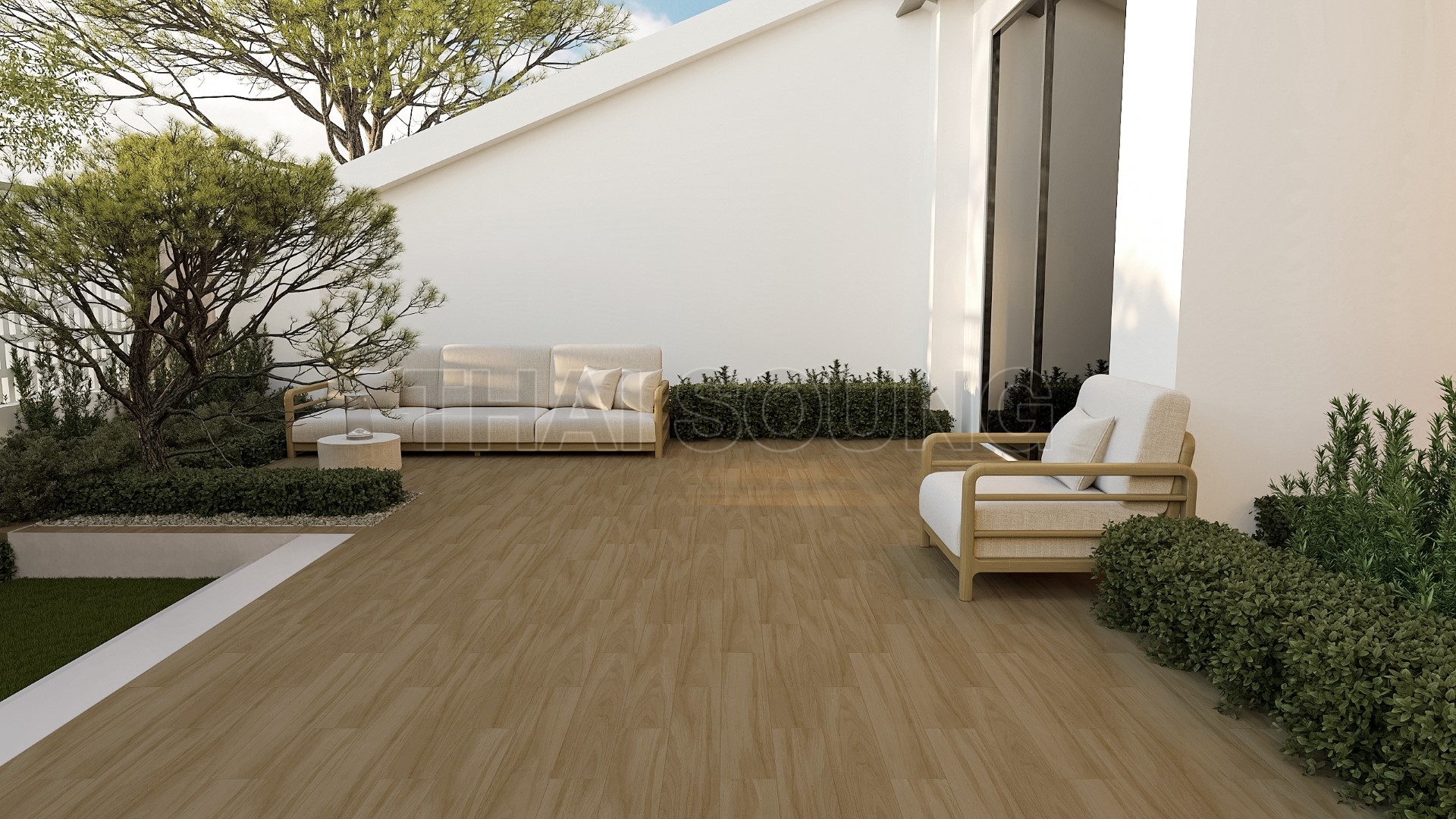 เมื่อติดตั้งแล้วจะรู้สึกถึงความอ่อนไหวของลวดลายไม้ได้เป็นอย่างดี คุณสมบัติ เป็นวัสดุที่สามารถทดแทนไม้จริง อีกทั้งยังดูแลรักษาง่ายและเพิ่มอายุการใช้งานได้มากกว่าวัสดุจากธรรมชาติ