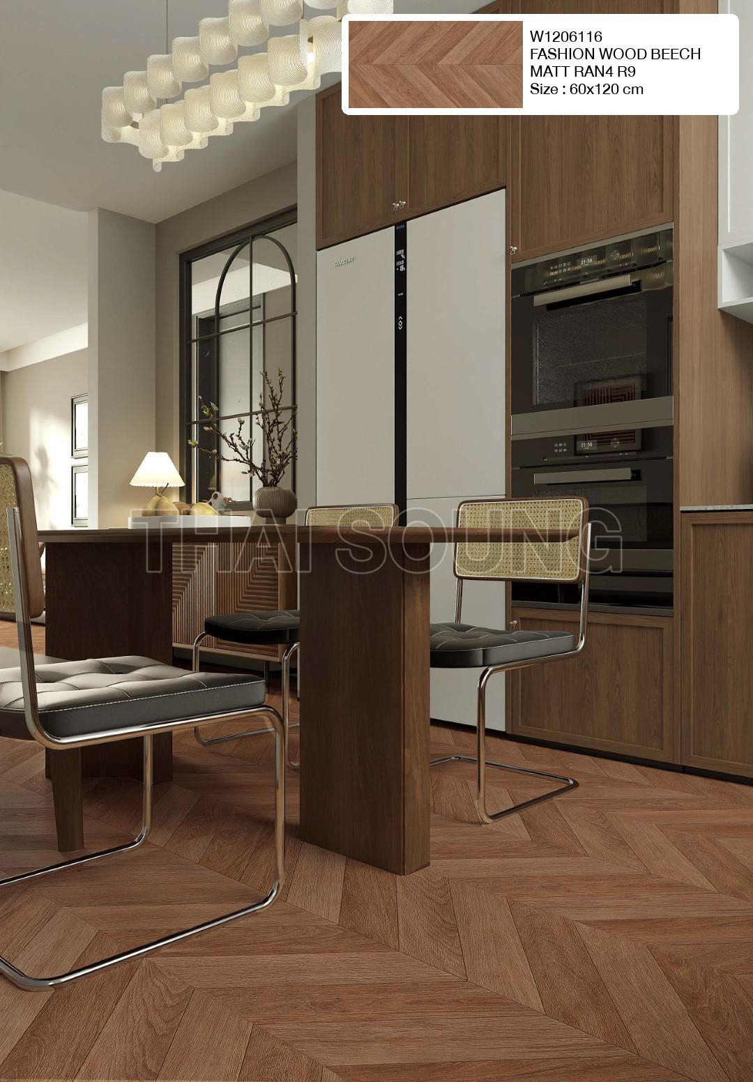 กระเบื้องพอร์ซเลน FASHION WOOD SERIES ชนิดเคลือบ (G/NORMAL BODY 0-3%) แบบปูพื้น บุผนัง ภายในและภายนอก กลุ่มดูดซึมน้ำต่ำน้อยกว่า 3% มีขนาด 60x120 เซนติเมตร RANDOM 4 ลาย ผิวสัมผัสแบบ MATT ค่า R10 ต้านทานการลื่น มีให้เลือก 6 เฉดสี ได้แก่ BEIGE, LIGHT BROWN , BROWN, MEDIUM BROWN, DARK BROWN และ ASH สามารถเลือกสรรให้เหมาะกับงานออกแบบได้อย่างหลากหลาย