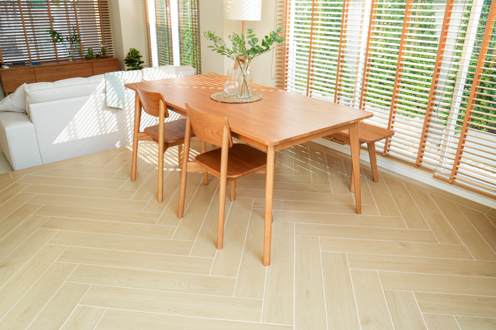 กระเบื้องลายไม้ โดยปกติแล้วผลิตมาให้หน้าสัมผัสคล้ายไม้จริงและทุกรายการเป็นกระเบื้องลายไม้กันลื่นได้ กระเบื้องสีครีมและสีเบจ เป็นโทนสีที่ได้รับความนิยมเพื่อสร้างบรรยากาศอบอุ่นให้พื้นที่ เป็นโทนสีเรียบง่าย กระเบื้องแผ่นเล็ก ขนาด 15*90 เหมาะสำหรับนำไปตกแต่งพื้นและผนัง โดยการนำไปปูรูปแบบต่างๆ เช่น ปูกระเบื้องแบบก่ออิฐ ปูสลับ หรือ ปูก้างปลา กระเบื้องชนิดพอร์ซเลนมีการผ่านการเผาด้วยความร้อนสูง ผสมผงหินจริง แร่หิน และดินขาว ทำให้ค่าความดูดซึมน้ำต่ำและมีความแข็งแรงจึงสามารถใช้งานได้ทุกสถานที่เป็นกระเบื้องปูพื้นและปูผนัง ทั้งภายนอกและภายในบ้าน กระเบื้องผิวด้าน เหมาะกับการใช้งานดีไซน์โทนโมเดิร์น และการทำความสะอาดกระเบื้อง สามารถทำได้โดยง่าย กระเบื้องกันลื่นปานกลางชนิด R9 เหมาะกับการปูพื้นที่โซนแห้ง หรือ โซนที่ไม่ได้สัมผัสกับน้ำตลอดเวลา เช่น ห้องนอน ห้องนั่งเล่น ห้องครัว หรือ ห้องน้ำโซนแห้ง |