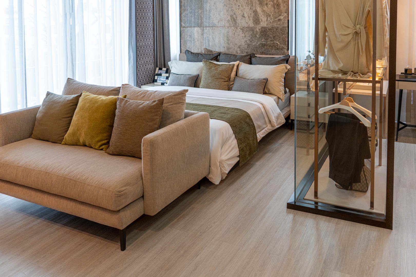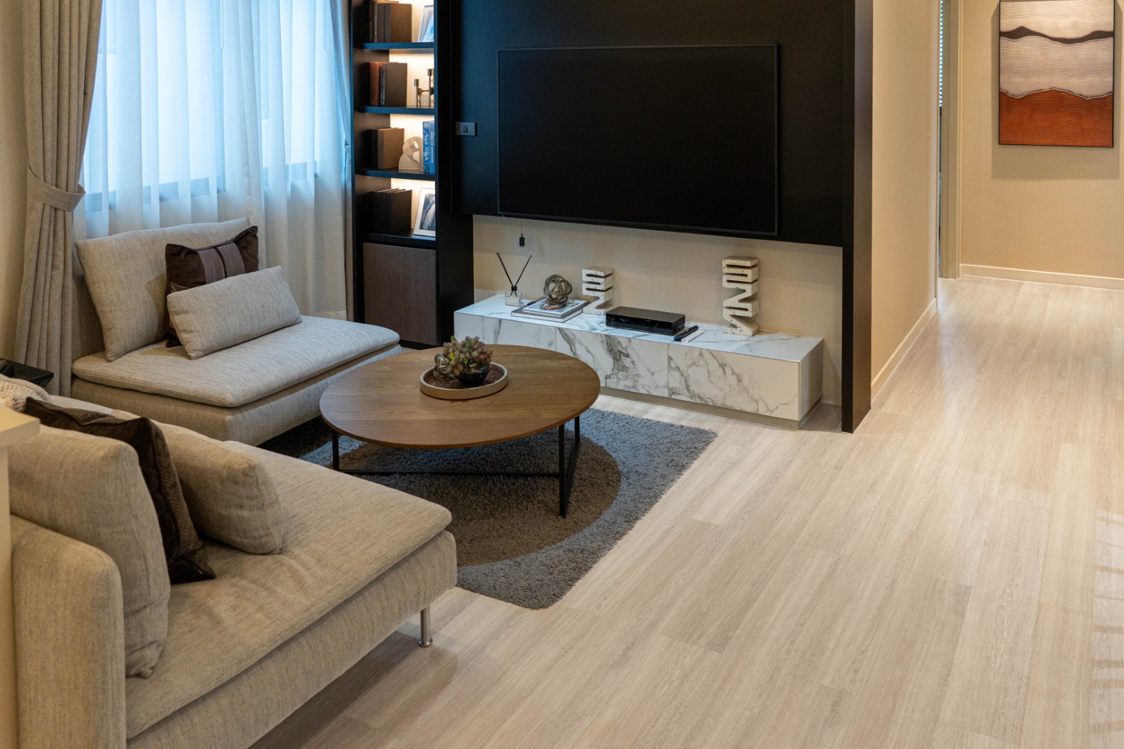 กระเบื้อง SPC หรือ พื้นไม้ SPC กระเบื้องสีเทา เหมาะกับการแต่งบ้านให้ดูโมเดิร์น เนื่องจากเป็นเฉดสีที่ทันสมัยและโทนสีกลาง สามารถเข้ากับของตกแต่งบ้าน และ เฟอร์นิเจอร์ได้ กระเบื้องแผ่นเล็ก ขนาด 18*122 เหมาะสำหรับนำไปตกแต่งพื้นที่ภายในห้องนอน ห้องนั่งเล่น โดยการนำไปปูรูปแบบต่างๆ เช่น ปูกระเบื้องแบบก่ออิฐ ปูสลับ หรือ ปูก้างปลา กระเบื้องชนิดพอร์ซเลนมีการผ่านการเผาด้วยความร้อนสูง ผสมผงหินจริง แร่หิน และดินขาว ทำให้ค่าความดูดซึมน้ำต่ำและมีความแข็งแรงจึงสามารถใช้งานได้ทุกสถานที่เป็นกระเบื้องปูพื้นและปูผนัง ทั้งภายนอกและภายในบ้าน กระเบื้องชนิดนี้ไม่มีค่าต้านทานความลื่น ( Slip Resistance Rating : ค่ากันความลื่น หรือ ค่า R ) จึงเหมาะกับการปูพื้นที่โซนแห้ง เช่น ห้องนอน ห้องนั่งเล่น หรือ ห้องครัว |