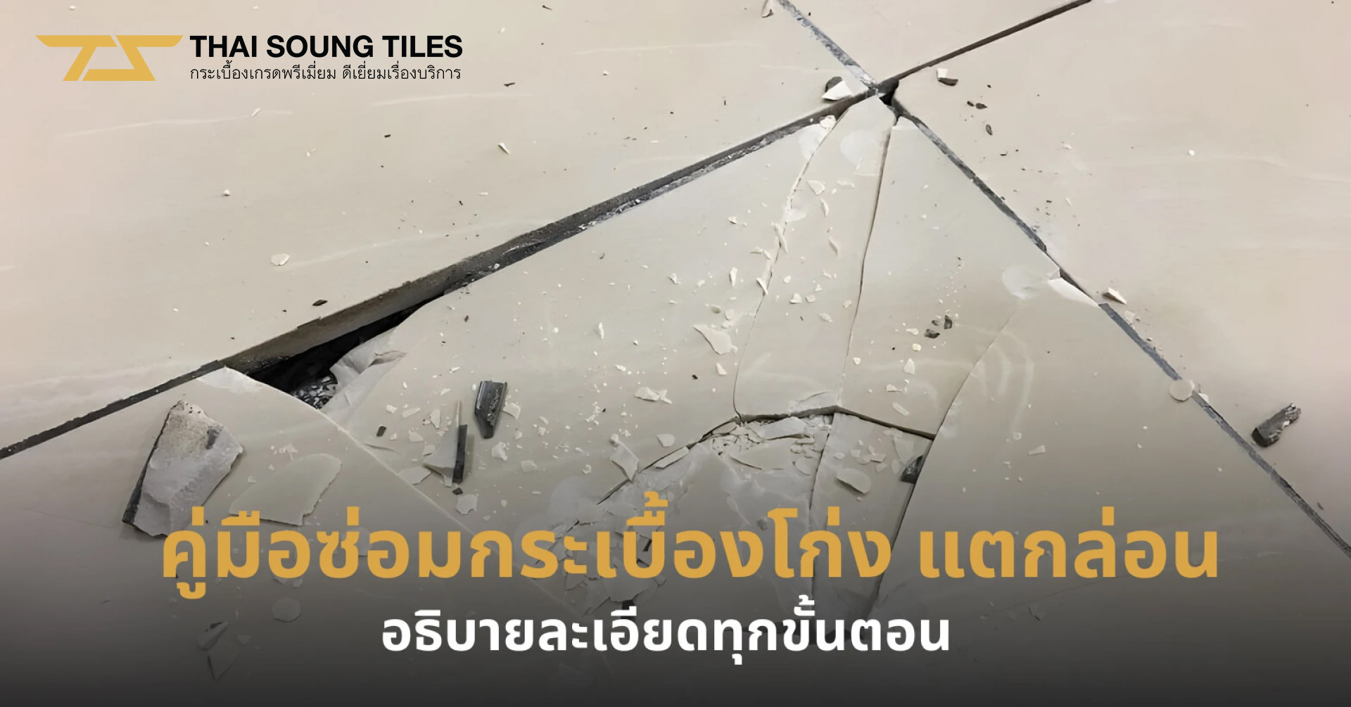ไม่ว่าจะเป็นการซ่อมกระเบื้องโก่ง หลุดล่อน หรือแตกร้าว ปัจจัยสำคัญที่ทำให้งานซ่อมปูกระเบื้องใหม่ออกมาสมบูรณ์ก็คือ “การเลือกใช้กระเบื้องที่มีคุณภาพดี” ซึ่งช่วยให้การยึดเกาะกับพื้นแน่นหนา ทนต่อความชื้นและการขยายตัวของวัสดุได้อย่างมั่นใจ สำหรับใครที่กำลังมองหากระเบื้องคุณภาพสูง ใช้งานได้ทั้งภายในและภายนอก และมีให้เลือกหลากหลายเฉดสีและพื้นผิว ต้องไม่พลาด ไทย สุง ร้านขายกระเบื้องเกรดพรีเมียมที่พร้อมตอบโจทย์ทุกความต้องการ ทั้งด้านดีไซน์และความทนทาน ด้วยประสบการณ์กว่า 21 ปีในการคัดสรรกระเบื้องคุณภาพ พร้อมให้คำปรึกษาอย่างมืออาชีพทั้งที่โชว์รูมและออนไลน์ สอบถามเพิ่มเติมได้ที่โทรศัพท์ Hotline : 0 2138 8911 และ 0 2138 8912 หรือ Add LINE Official Account: @thaisoungtiles