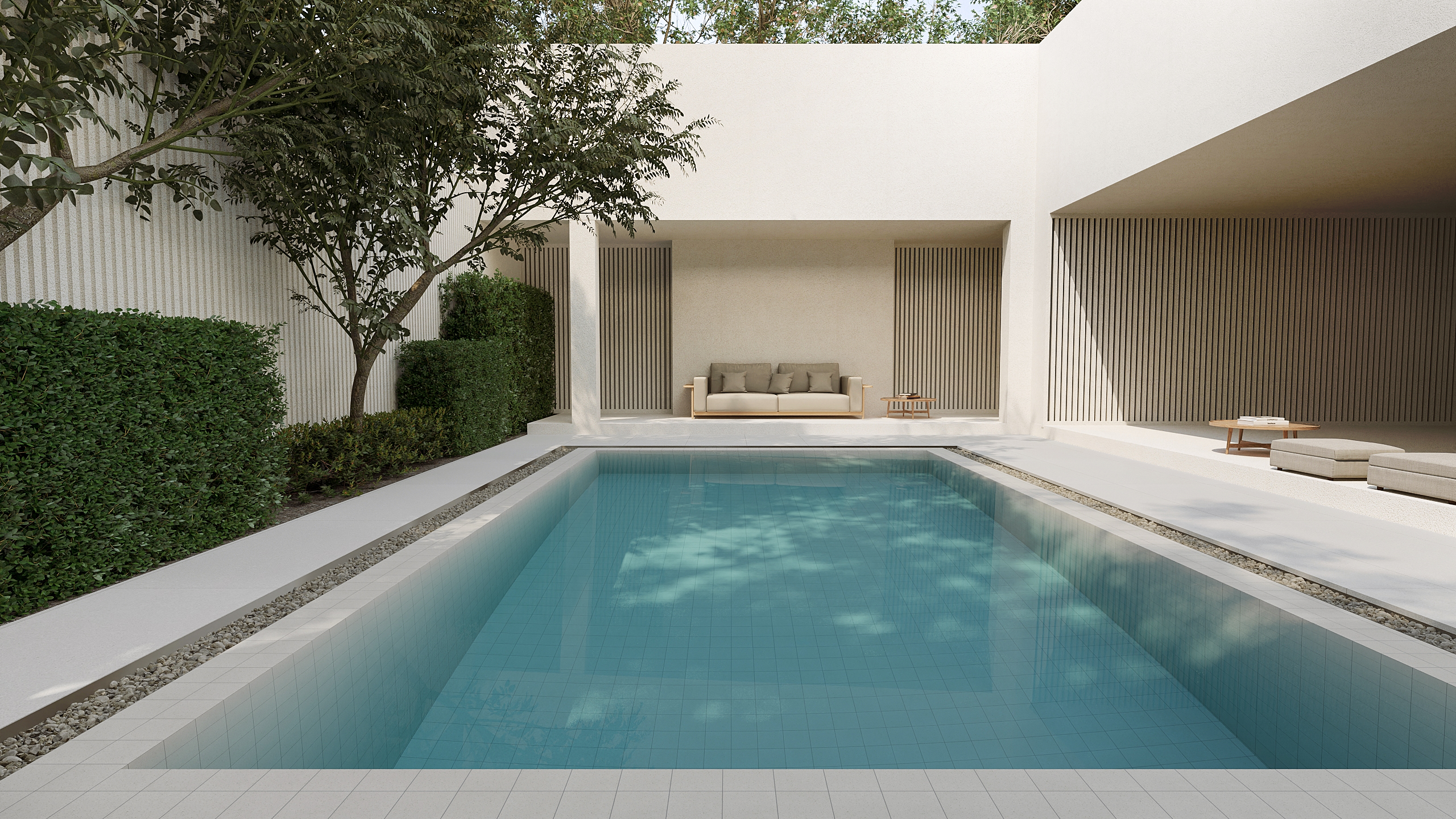 หากบ้านมีพื้นที่ที่ไม่สามารถเปลี่ยนสีผนังได้ง่าย การเลือกโทนสีของวัสดุพื้นหรือผนังในบางจุด ก็เป็นอีกวิธีหนึ่งในการปรับสมดุลสีภายในบ้าน