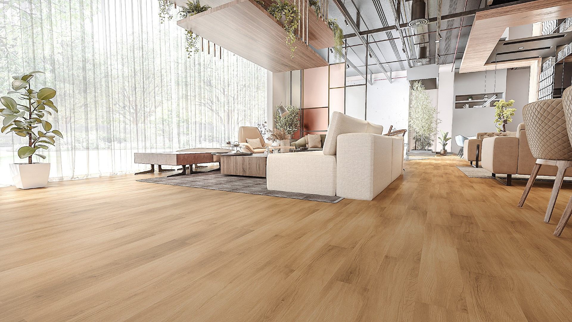 ( ภาพห้องตัวอย่างตกแต่งด้วยกระเบื้องยาง SPC รหัสสินค้า JWZ8219 )