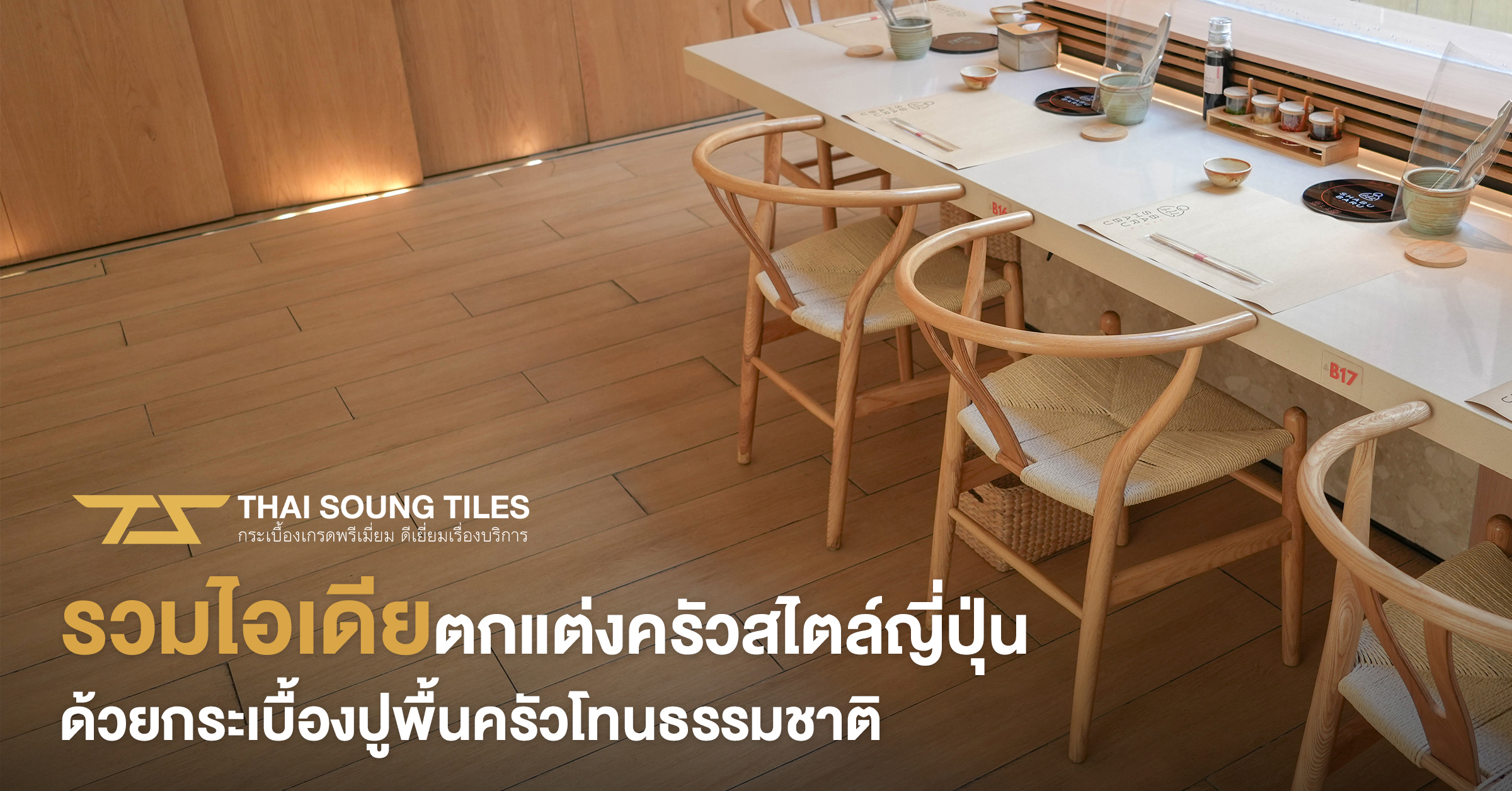 กระเบื้องลายไม้เป็นหนึ่งในตัวเลือกยอดนิยมของครัวสไตล์ญี่ปุ่น เพราะให้ความรู้สึกอบอุ่นเหมือนไม้จริง แต่ทนทานต่อความชื้นและคราบน้ำมันได้ดีกว่า เหมาะกับพื้นที่ที่ต้องใช้งานบ่อยอย่างห้องครัว