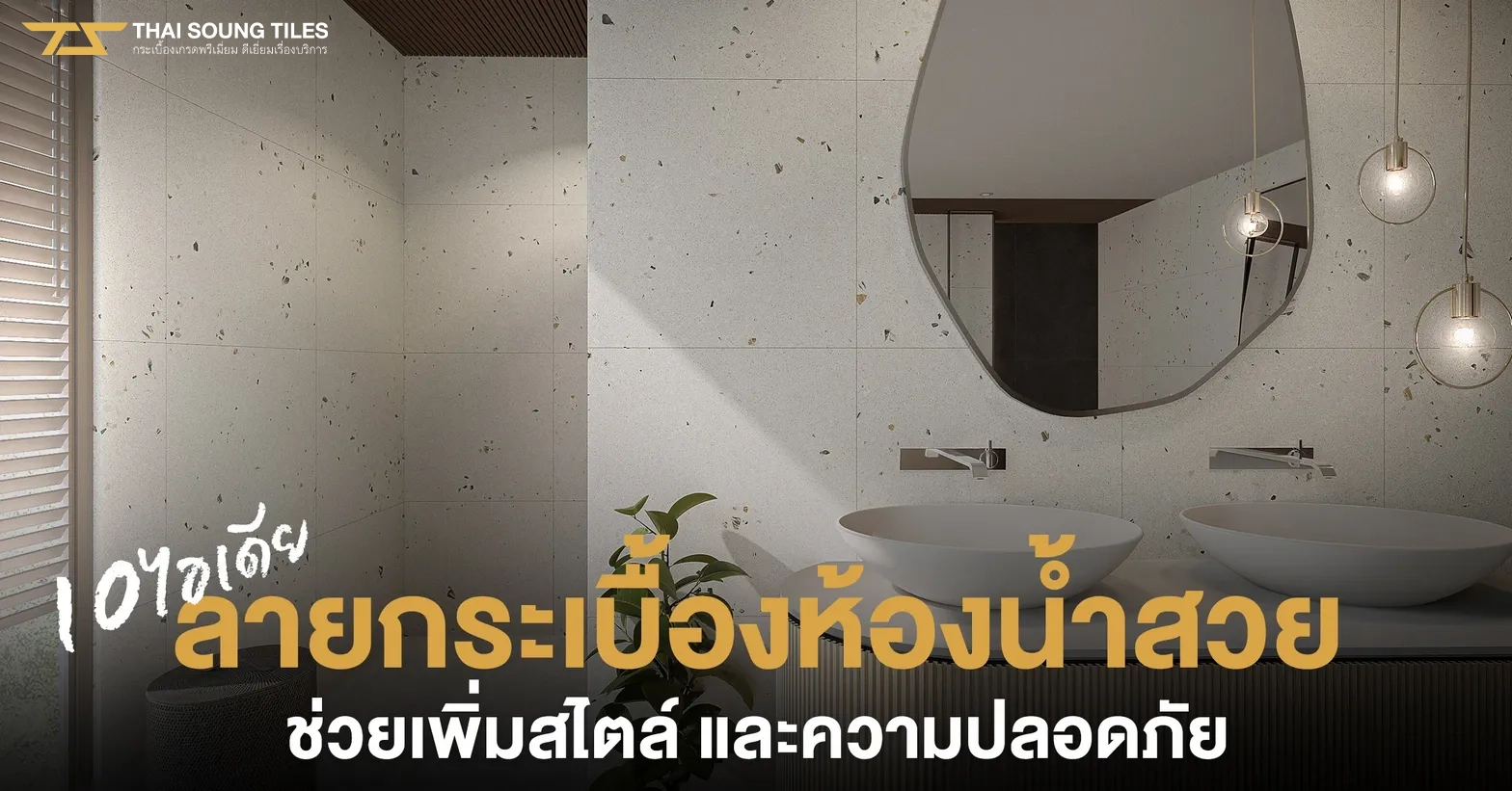 การเลือกกระเบื้องห้องน้ำนั้นนอกจากในเรื่องของลวดลาย และดีไซน์ที่สวยงามแล้ว ความปลอดภัยก็ยังเป็นอีกสิ่งหนึ่งที่สำคัญไม่แพ้กัน (หากต้องการศึกษาข้อมูลเพิ่มเติมเกี่ยวกับหลักการเลือกกระเบื้องให้ถูกต้อง ตั้งแต่การเลือกประเภท ขนาด จนถึงการติดตั้ง สามารถดู วิธีเลือกกระเบื้องห้องน้ำฉบับครบถ้วน ได้) ลวดลายกระเบื้องแต่ละแบบจะให้บรรยากาศ และอารมณ์ที่แตกต่างกันไป อย่างการเลือกใช้กระเบื้องลายหินธรรมชาติที่ให้ความรู้สึกผ่อนคลาย และกระเบื้องลายไม้ที่ให้ความอบอุ่น ไปจนถึงกระเบื้องลายอิฐและลายหินขัดที่มีสไตล์ดิบเท่ รวมถึงกระเบื้องลายซีเมนต์ที่ให้ความเป็นโมเดิร์น การเลือกกระเบื้องที่มีคุณสมบัติการกันลื่น เช่น กระเบื้อง Smooth Grip จะช่วยเพิ่มความปลอดภัยในห้องน้ำ อีกทั้งยังคงความสวยงามภายในห้องน้ำเอาไว้ได้เป็นอย่างดี หากคุณกำลังมองหากระเบื้องสำหรับห้องน้ำที่ทั้งสวยงาม และปลอดภัย ที่ ไทย สุง เรามีกระเบื้องให้เลือกมากมายสามารถตอบโจทย์ทุกสไตล์ตกแต่งห้องน้ำ นอกจากนี้ยังทีมผู้เชี่ยวชาญคอยให้บริการให้คำปรึกษา และทีมออกแบบ 3D ช่วยจำลองไอเดียห้องน้ำที่คุณต้องการออกมาให้สวยงาม