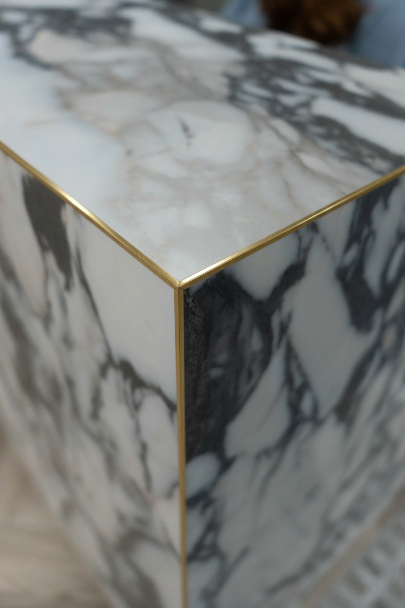 เป็นคิ้วที่มีเส้นสายชัดเจน ขอบเป็นมุมฉาก ให้ภาพลักษณ์ที่เรียบ เท่ และเป็นระเบียบ เหมาะสำหรับใช้เป็นเส้นแบ่งแนวระหว่างวัสดุ 2 สี หรือ 2 ประเภท รวมถึงใช้เป็นตัวจบกระเบื้องบริเวณมุมเสาและขอบผนัง ช่วยเน้นดีไซน์ให้ดูโมเดิร์นมากขึ้น